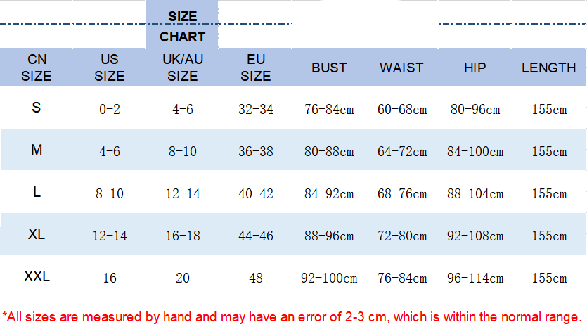 *Every dress has a unique size chart,please compare your measurement to the measurements provided in the size chart.And do not measure with clothing except undergarments.