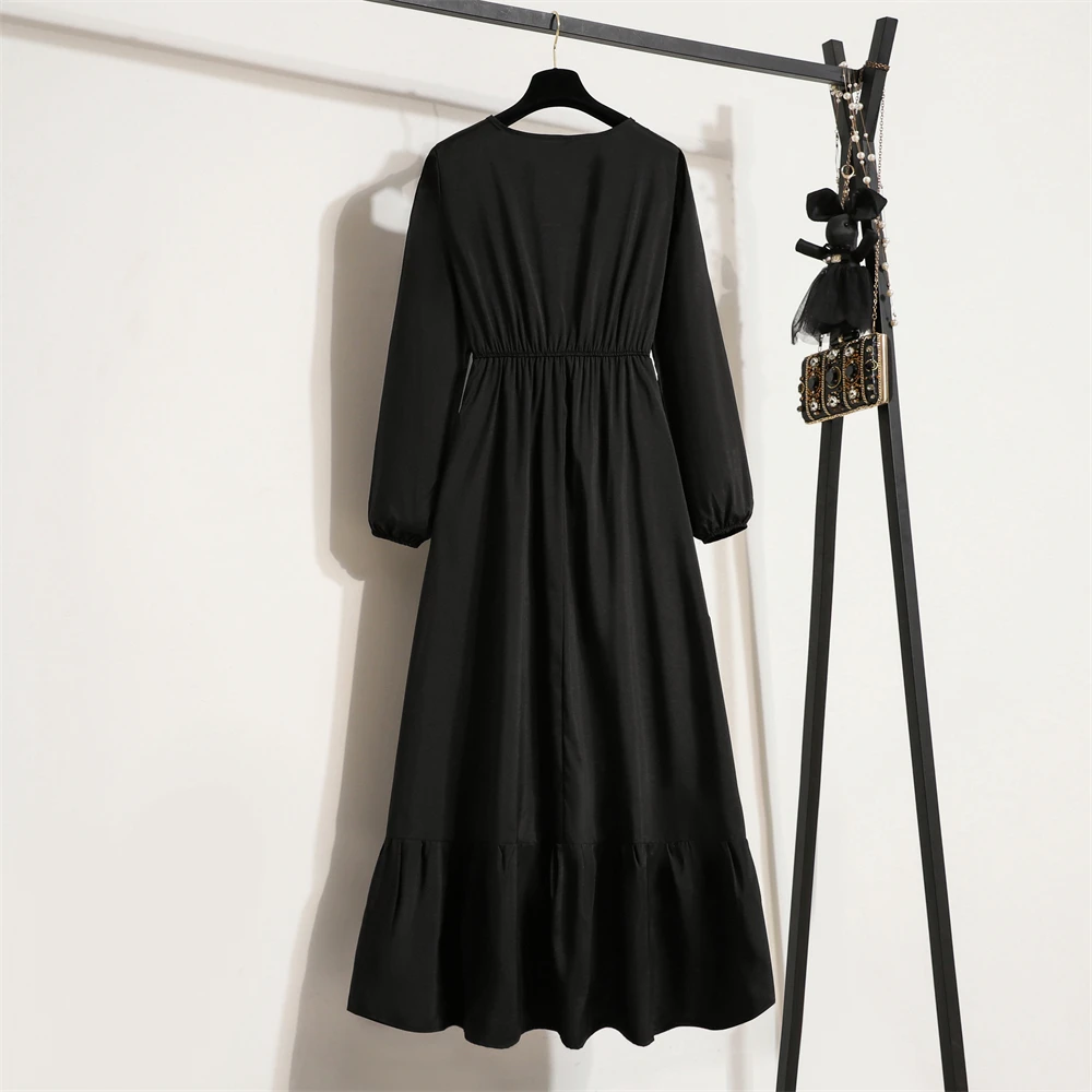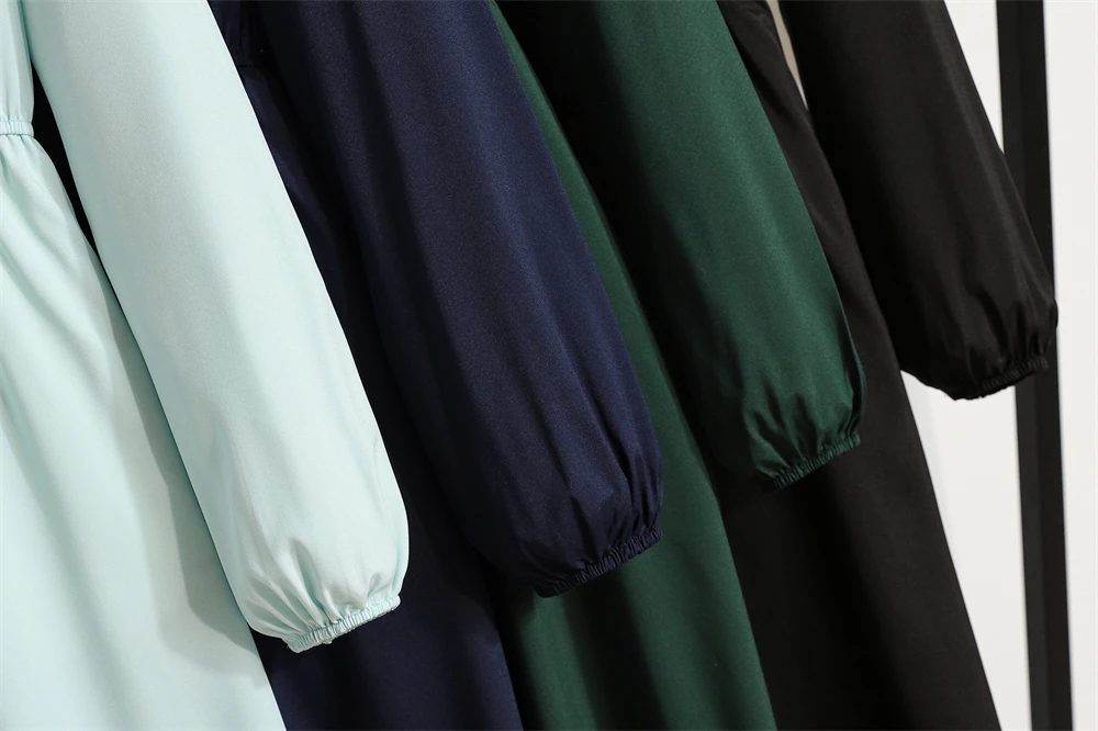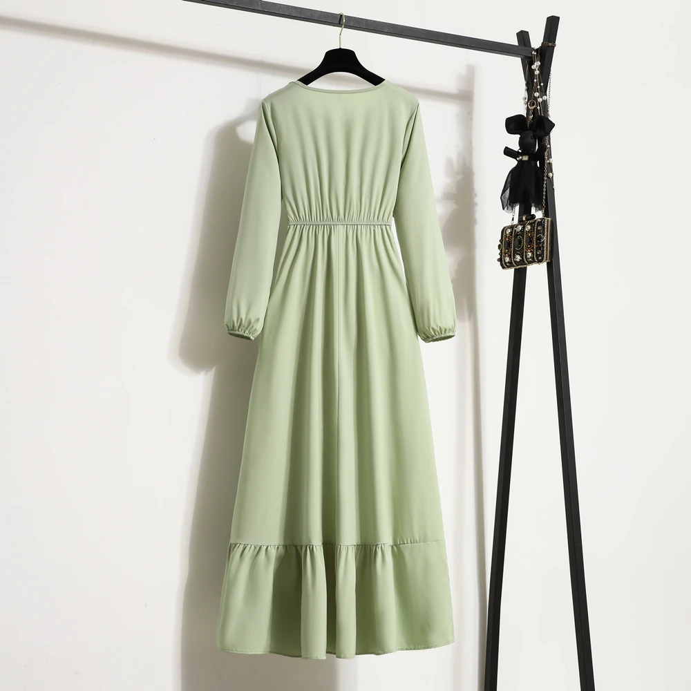 Fleepmart Spring Autumn Mujer Vestidos Solid Full Sleeve O-neck Casual Chiffon Dress Women Muslim Long Dress Solid Loose Maxi Dresses