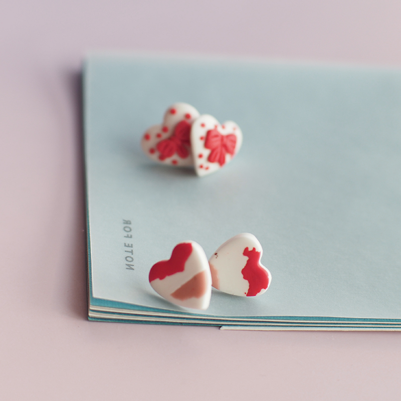 Fleepmart Spring Collection Cute Small Size Dangle Heart Pink Red Stamp Envelop Long Links Polymer Clay Earrings Sets Gifts For Valentine