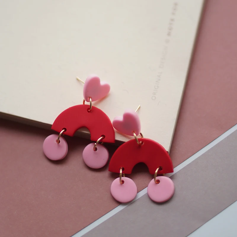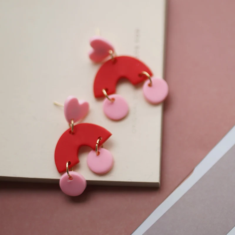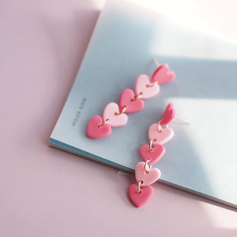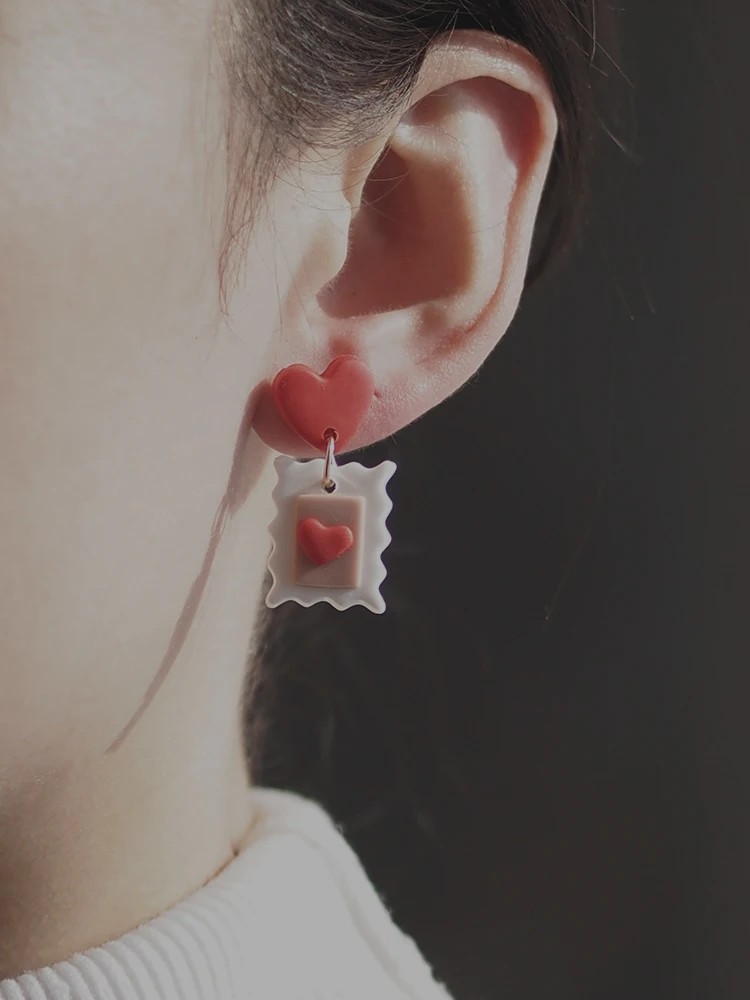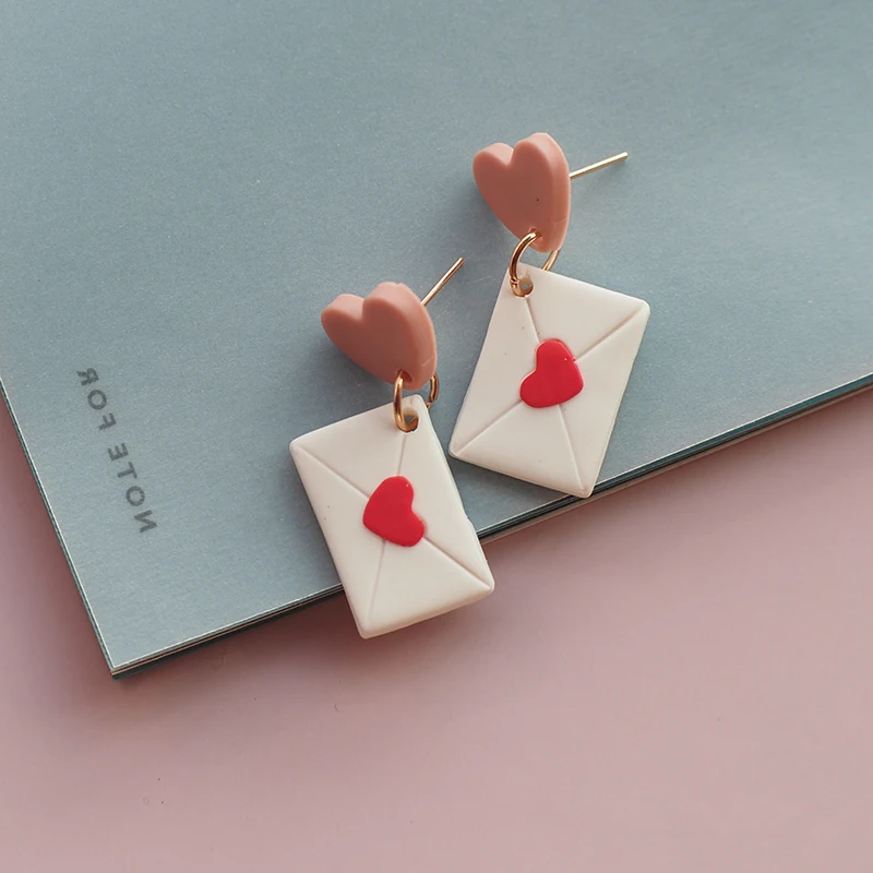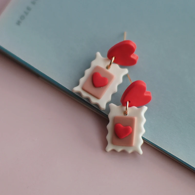 Fleepmart Spring Collection Cute Small Size Dangle Heart Pink Red Stamp Envelop Long Links Polymer Clay Earrings Sets Gifts For Valentine