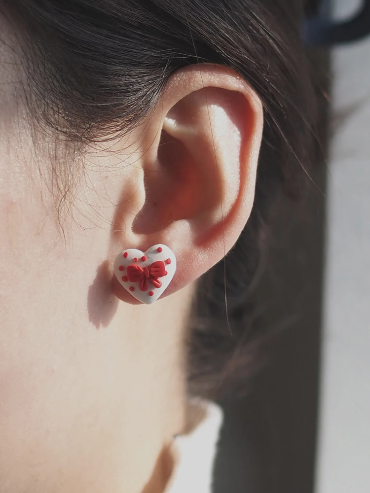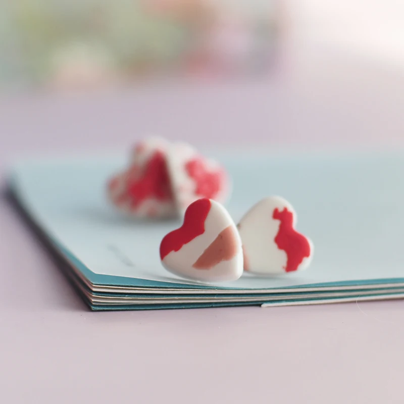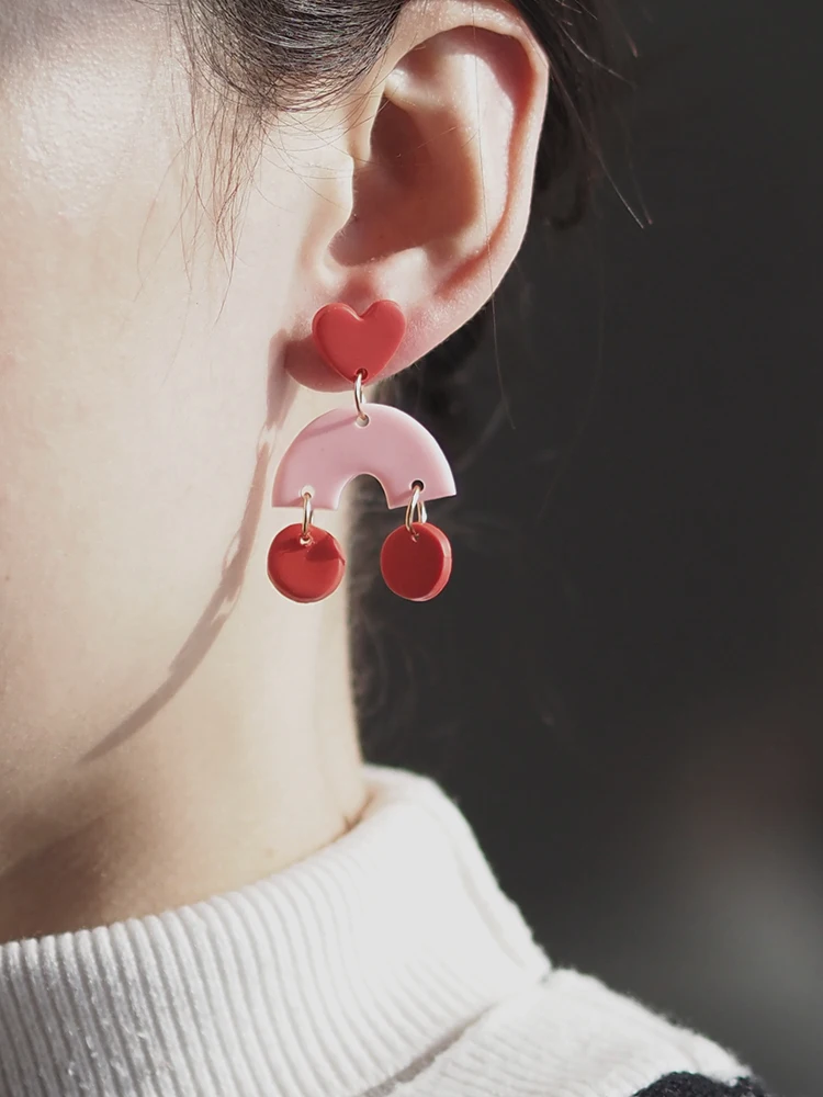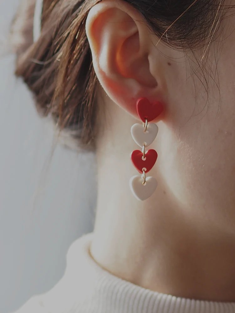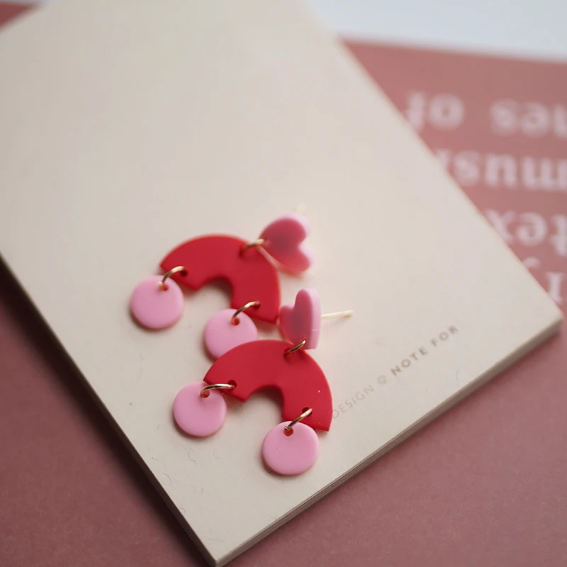 Fleepmart Spring Collection Cute Small Size Dangle Heart Pink Red Stamp Envelop Long Links Polymer Clay Earrings Sets Gifts For Valentine