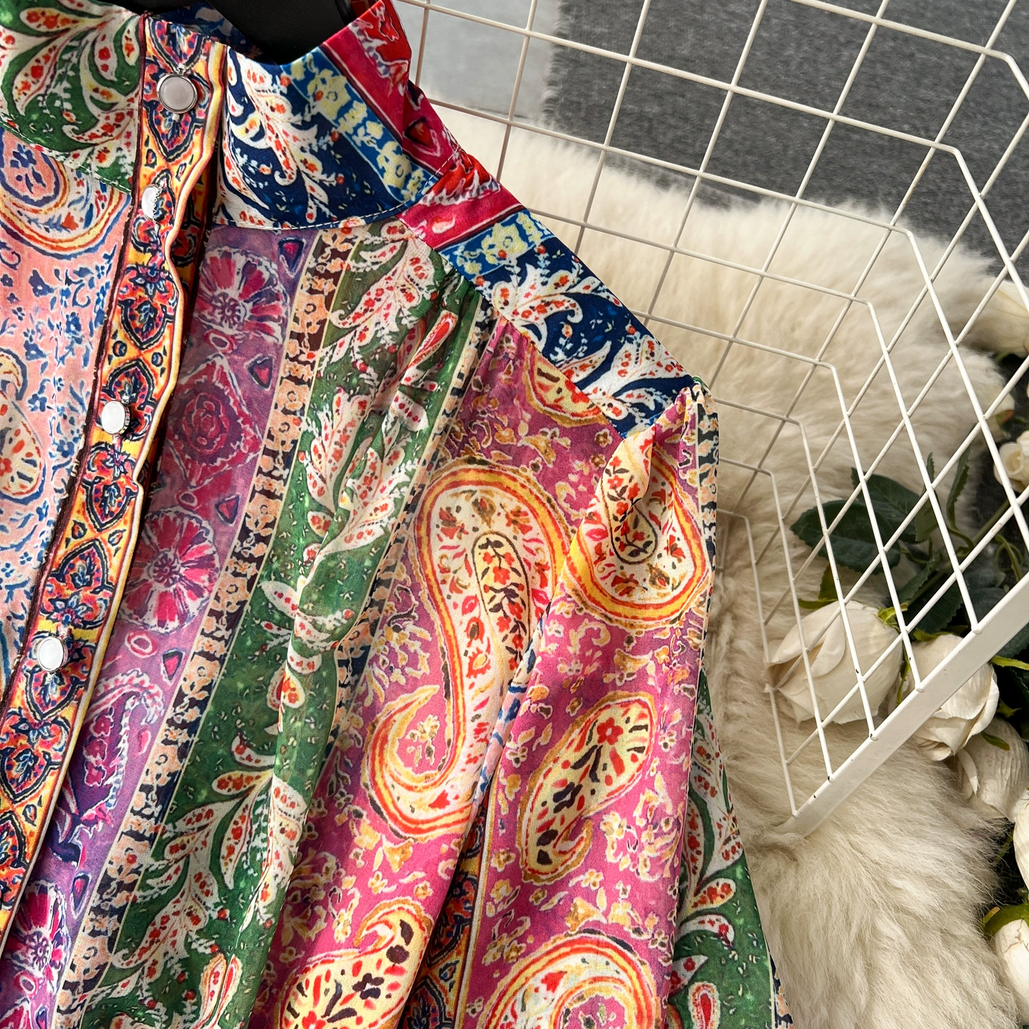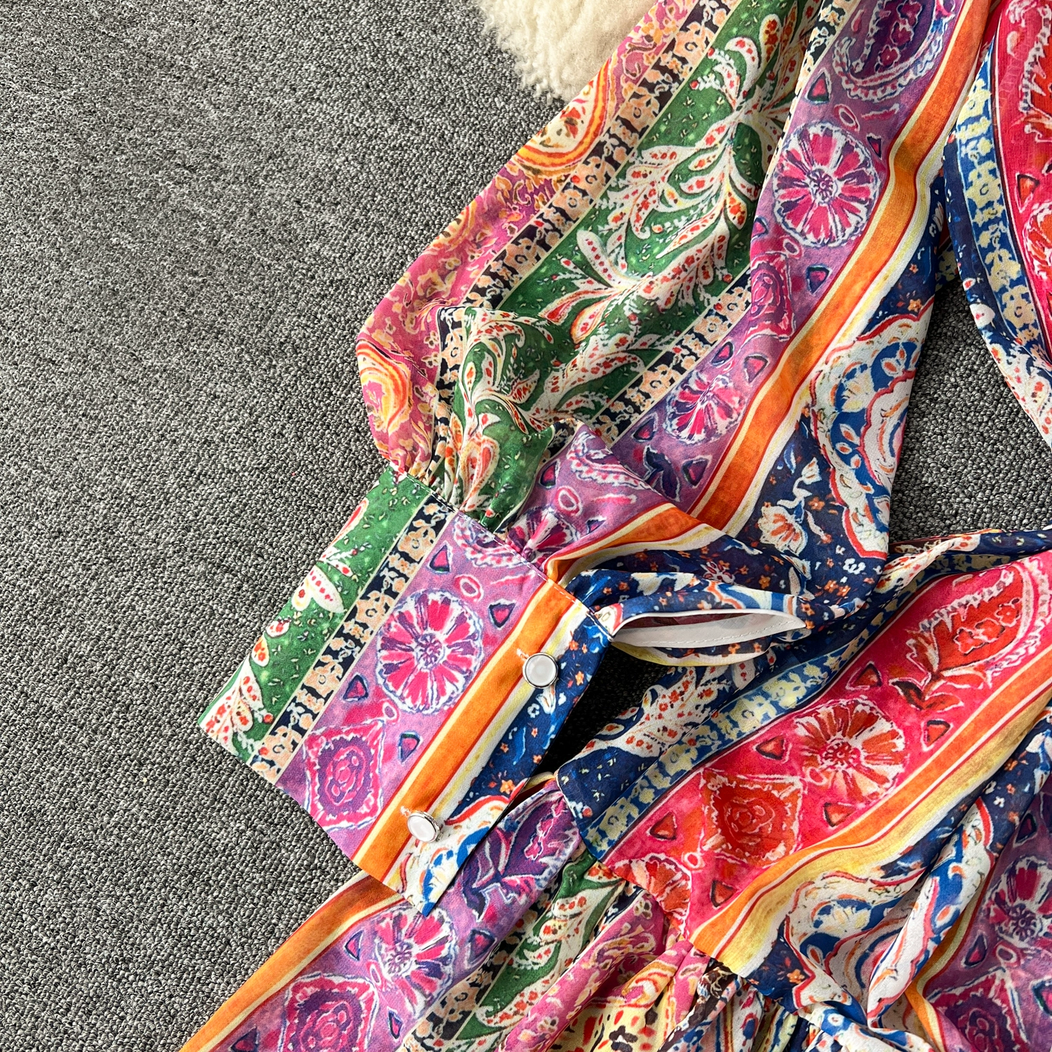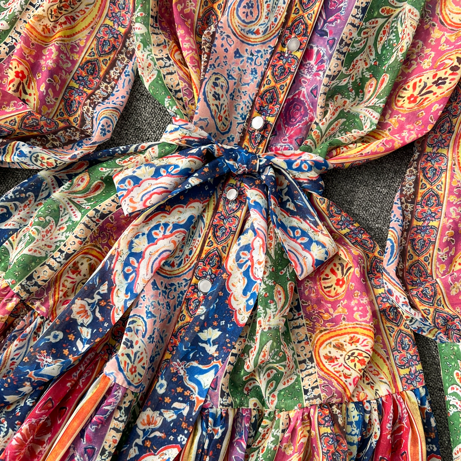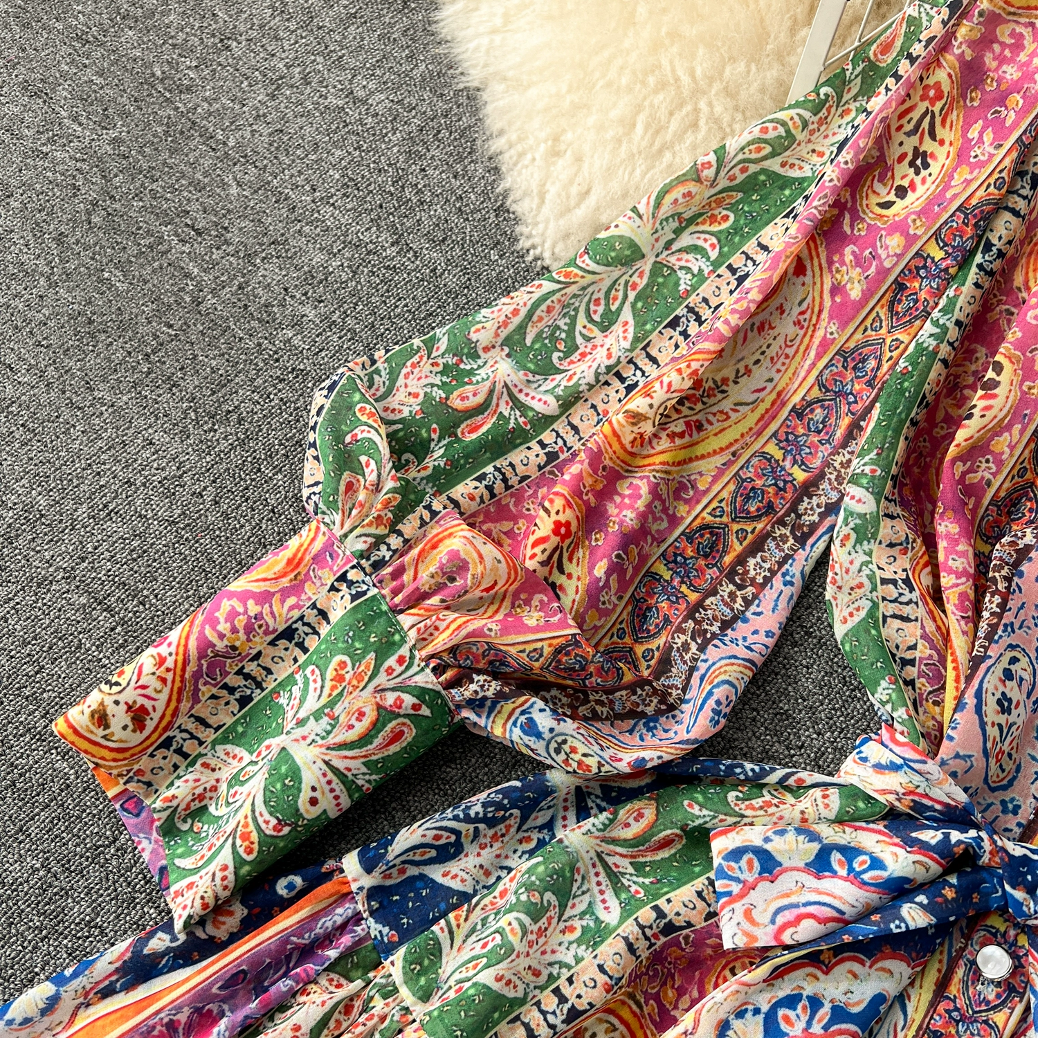Fleepmart Spring Holiday Paisley Maxi Dress Women Clothing Turleneck Long Lantern Sleeve Flower Retro Print Belted Chiffon Loose Vestidos