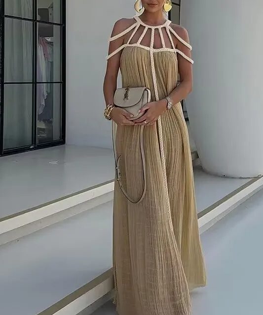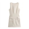 Fleepmart Spring New Women’s Fashion and Elegance Slim Fit Versatile Belt Decoration Round Neck Sleeveless Short Dress