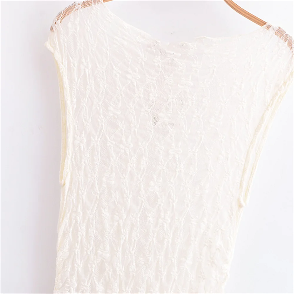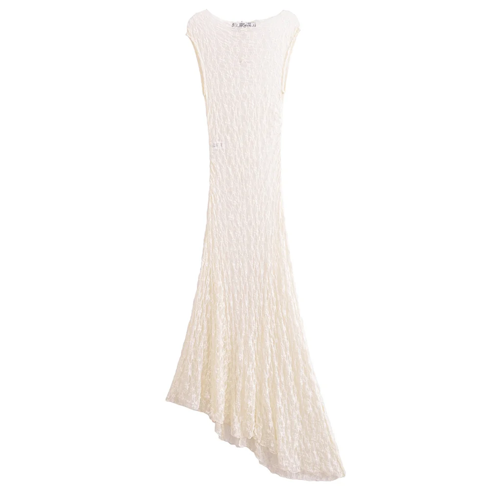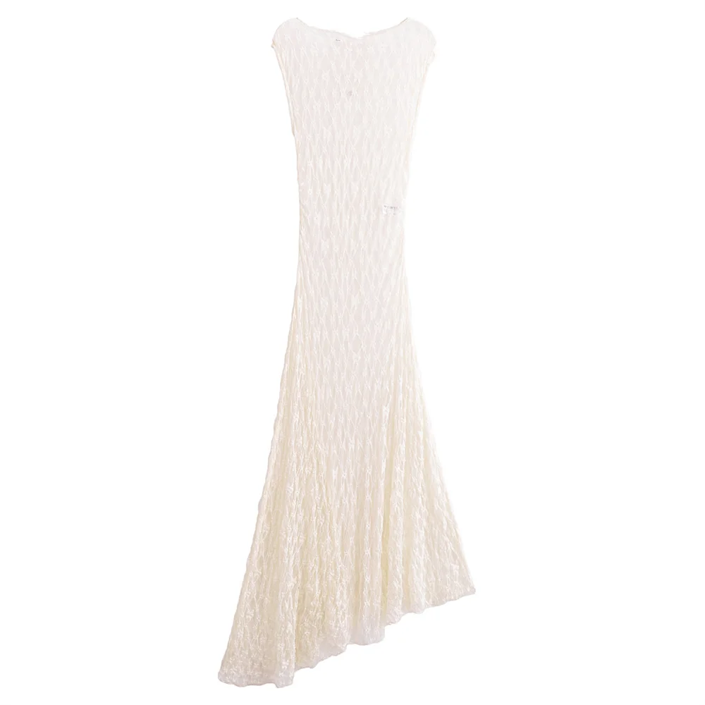 Fleepmart Spring New Women’s Slim Fit Versatile Lace Hollow out Design Round Neck Sleeveless Long Dress