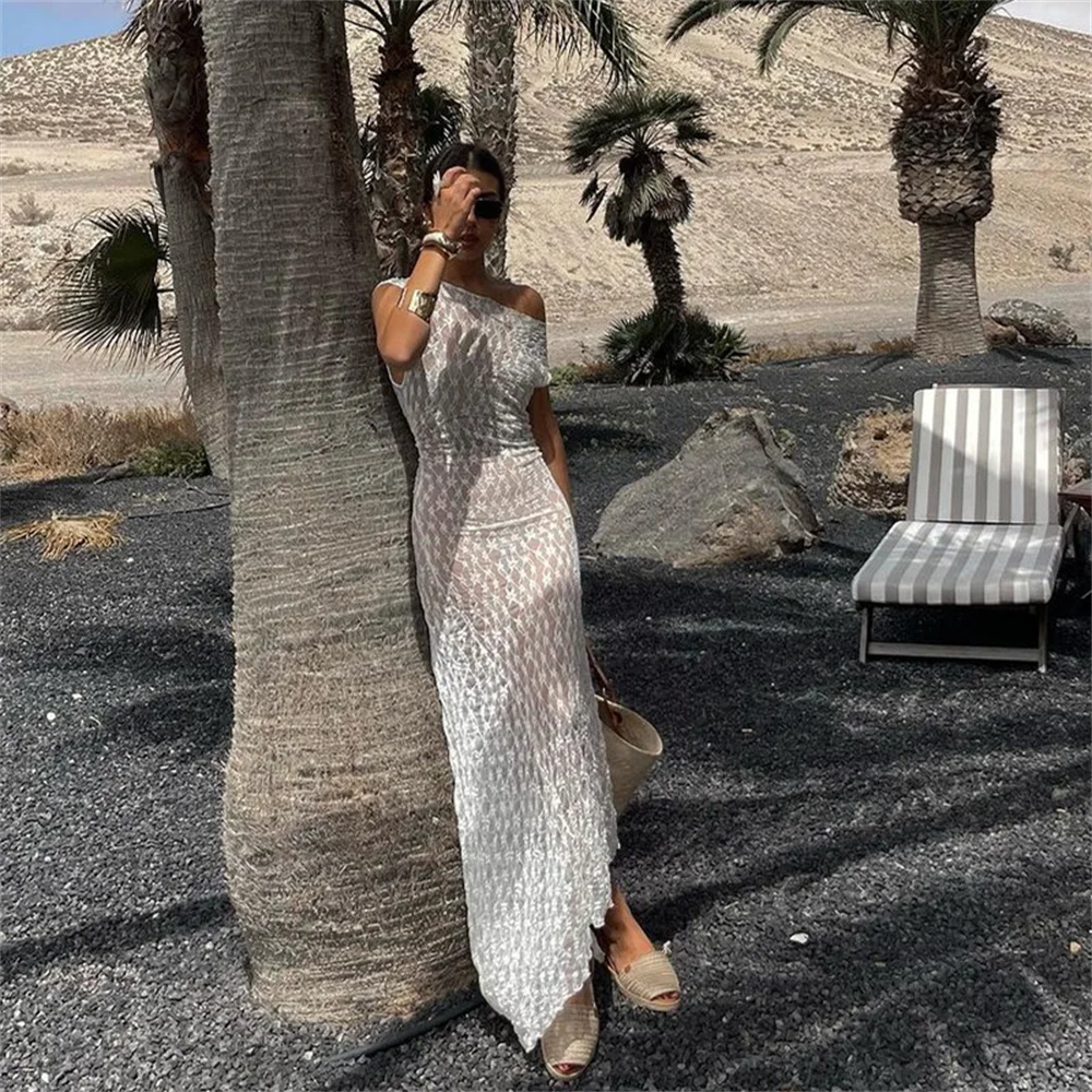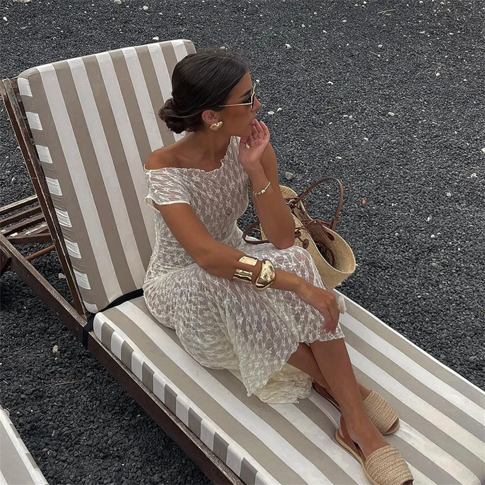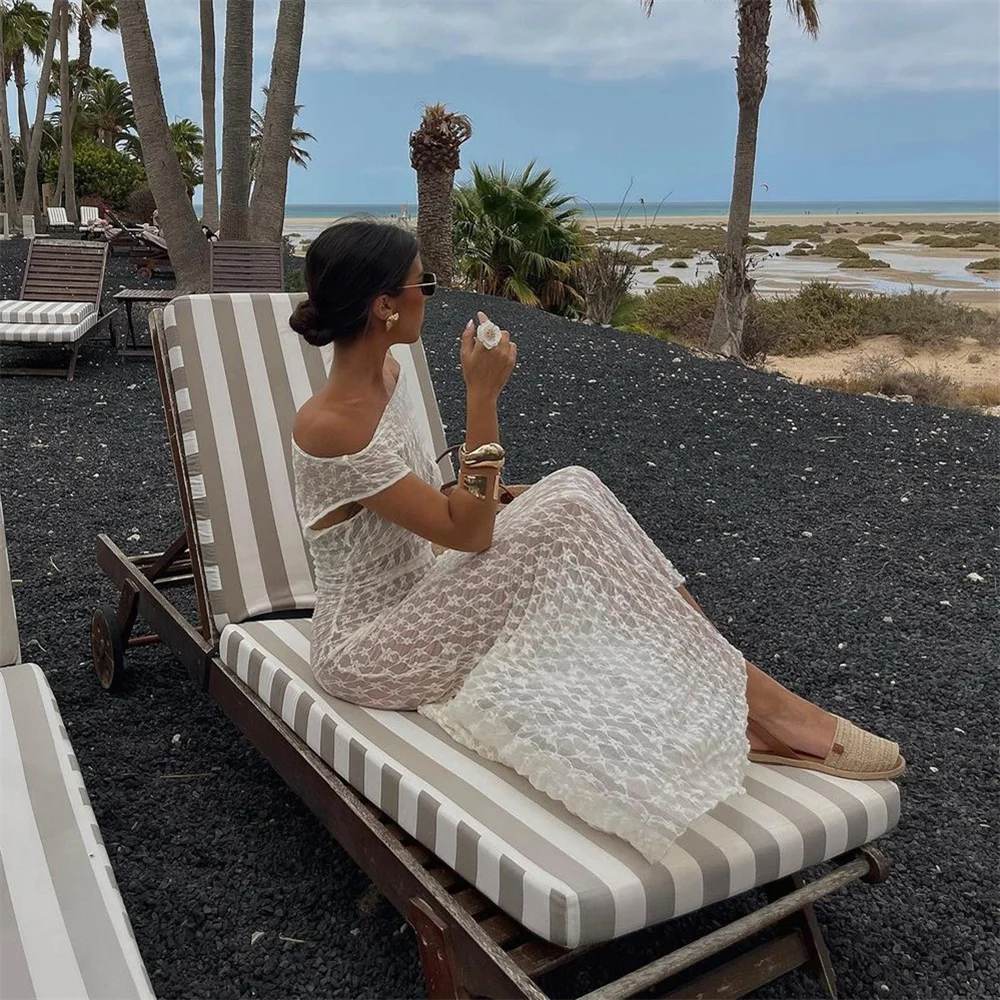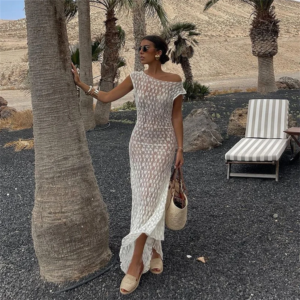 Fleepmart Spring New Women’s Slim Fit Versatile Lace Hollow out Design Round Neck Sleeveless Long Dress