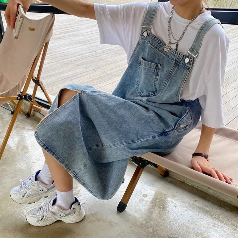 Fleepmart Spring Summer Denim Overall Dress Women Sleeveless Jeans Dresses Fashion Female Solid Slip Casual Loose Spaghetti Strap Dresses