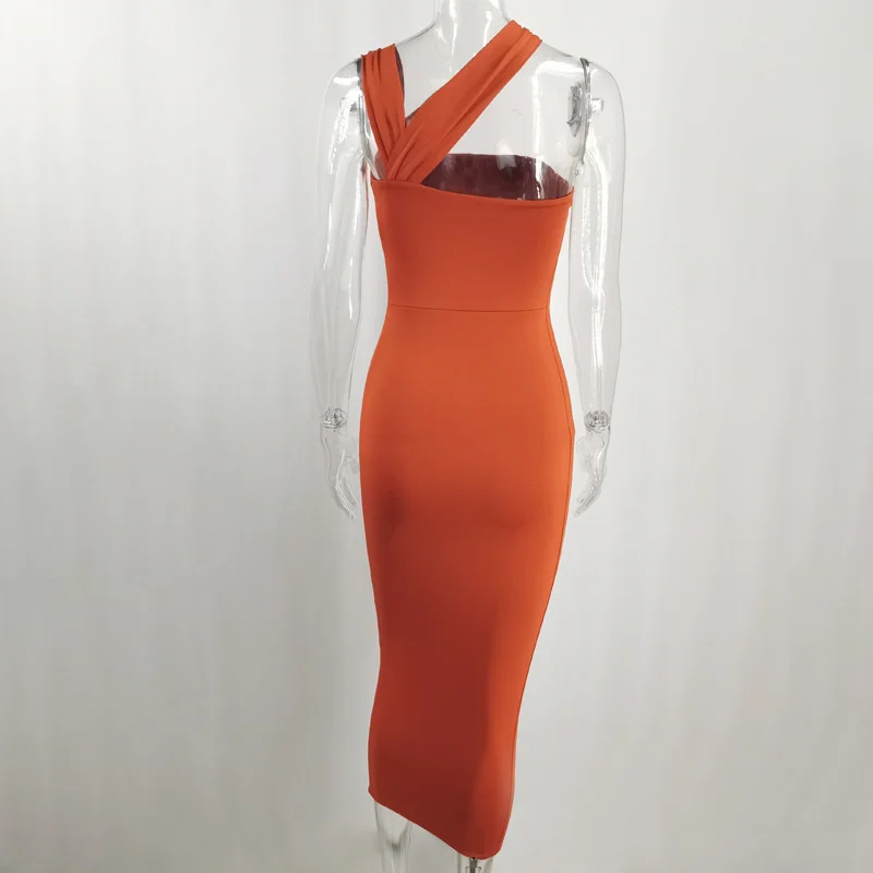 Fleepmart Spring Summer Midi Dress Women Bodycon Bandage Hollow Out Nightclub Dress Elegant Sleeveless Sexy Party Club Dress