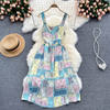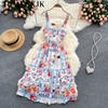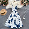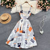 Fleepmart Square Collar Magazine Print Midi Dress For Women 2022 Slim Elegant Spaghetti Strap Prom Vintage Kawaii Dresses