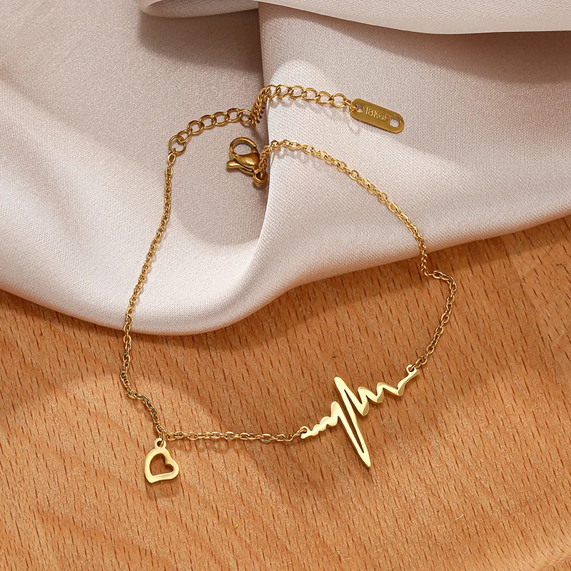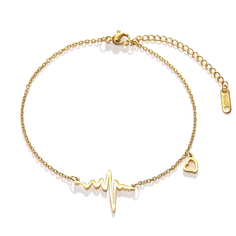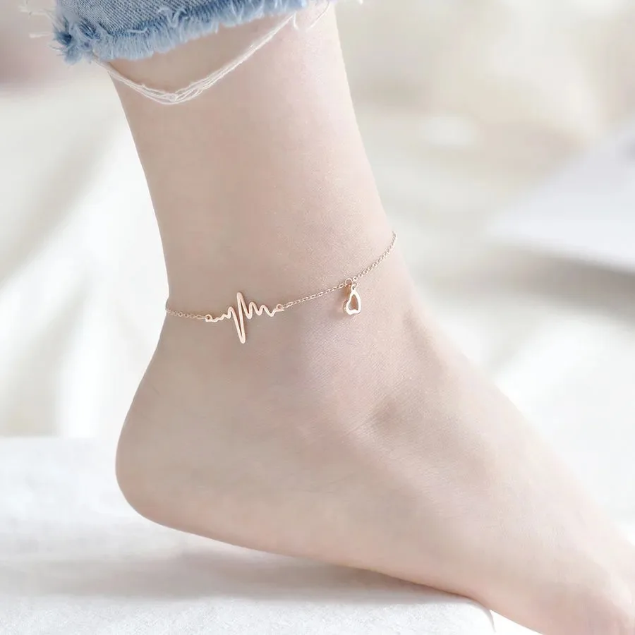 Fleepmart Stainless Steel Chain Heartbeat Anklets For Women Adjustable Foot Jewelry Anklet Summer