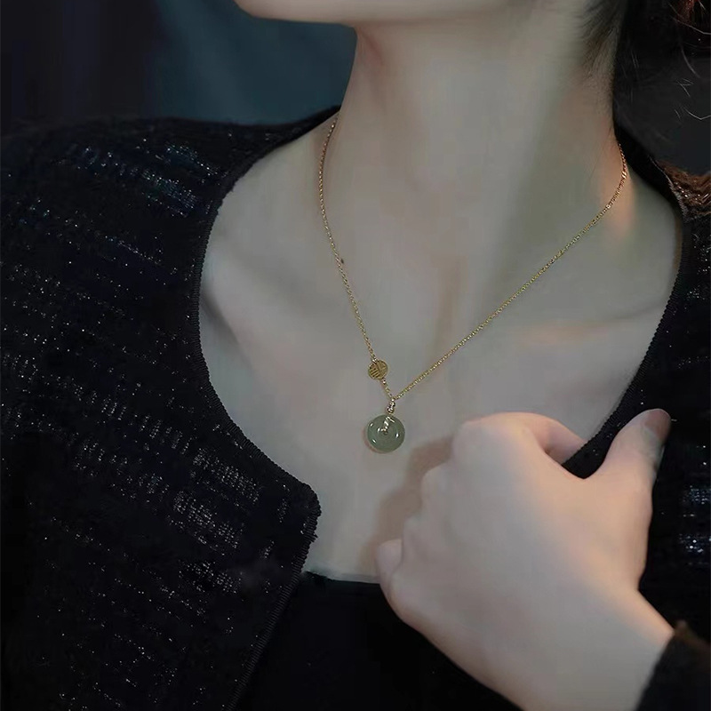 Fleepmart Stainless steel collarbone chain necklace Copper Coin safety buckle Pendant Party jewelry Gift