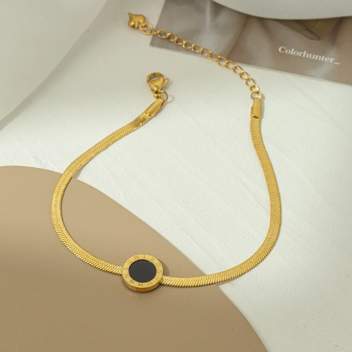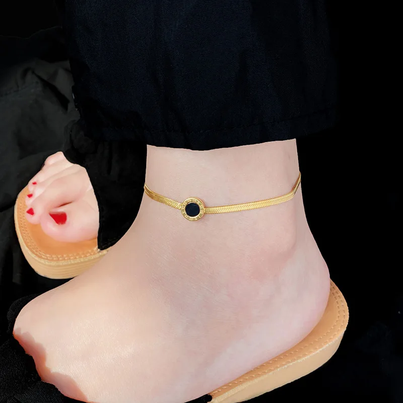 Fleepmart Stainless Steel Gold Color Roman Numerals Disc Anklet for Women Girls Foot Accessories