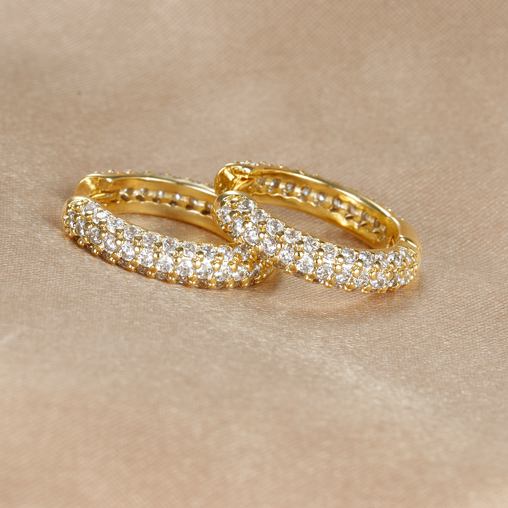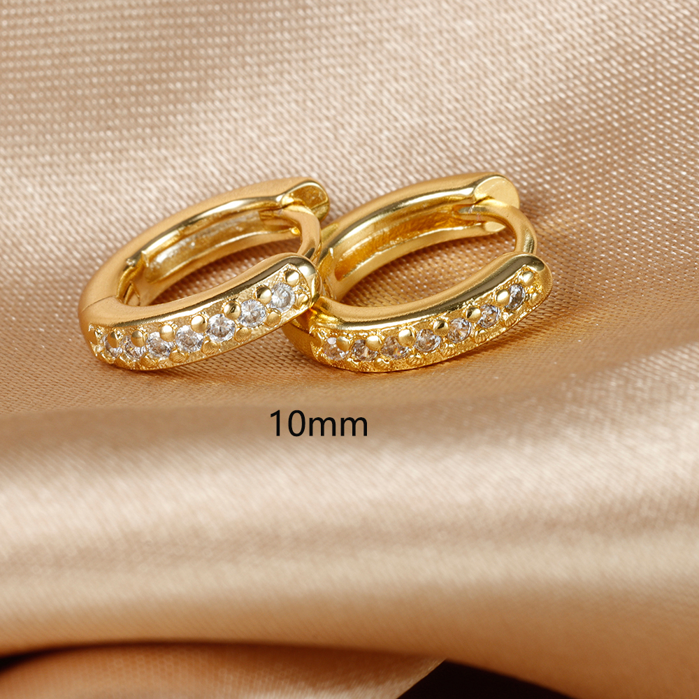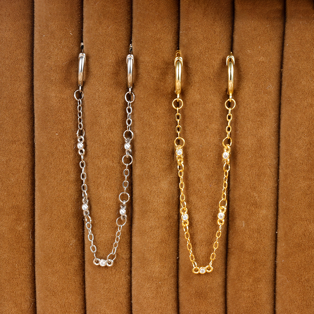 Fleepmart Stainless Steel Gold Plated Double Link Chain Hoop Earrings Small Zircon Round Circle Huggie Piercing Earring New Arrival 2023