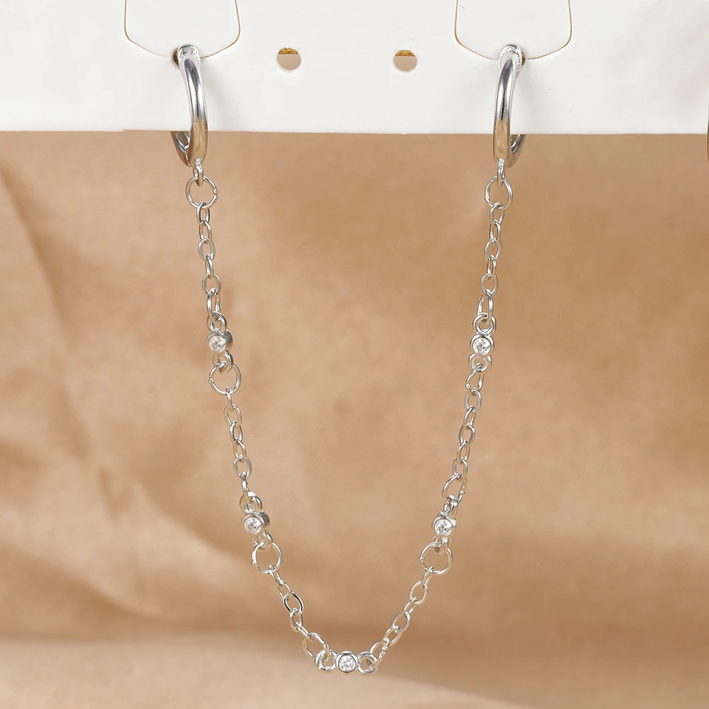 Fleepmart Stainless Steel Gold Plated Double Link Chain Hoop Earrings Small Zircon Round Circle Huggie Piercing Earring New Arrival 2023