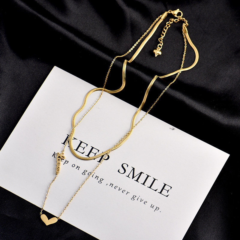 Fleepmart Stainless Steel Heart Pendant Double Layer Necklace Korean Fashion Jewelry Ladies Girls Sexy Clavicle Chain Party Gifts