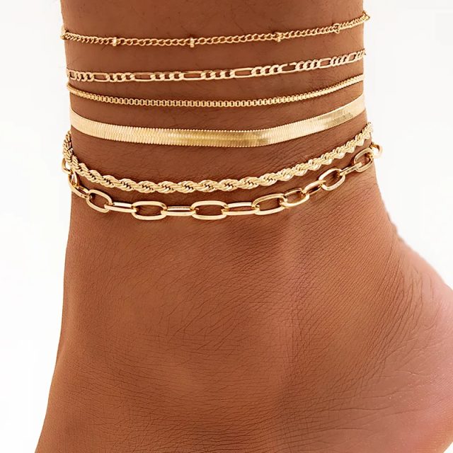 Fleepmart Stainless Steel Snake Chain Anklet for Women Summer Gold Plated Anklets Fashion Jewelry