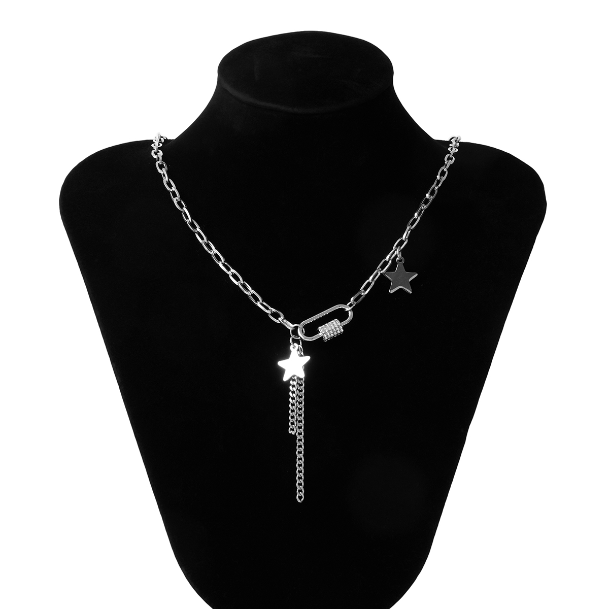 Fleepmart Stainless Steel Star Tassel Pendant Necklace for Women Men Minimalism Rhinestone Link Chain Necklace Korean Jewelry