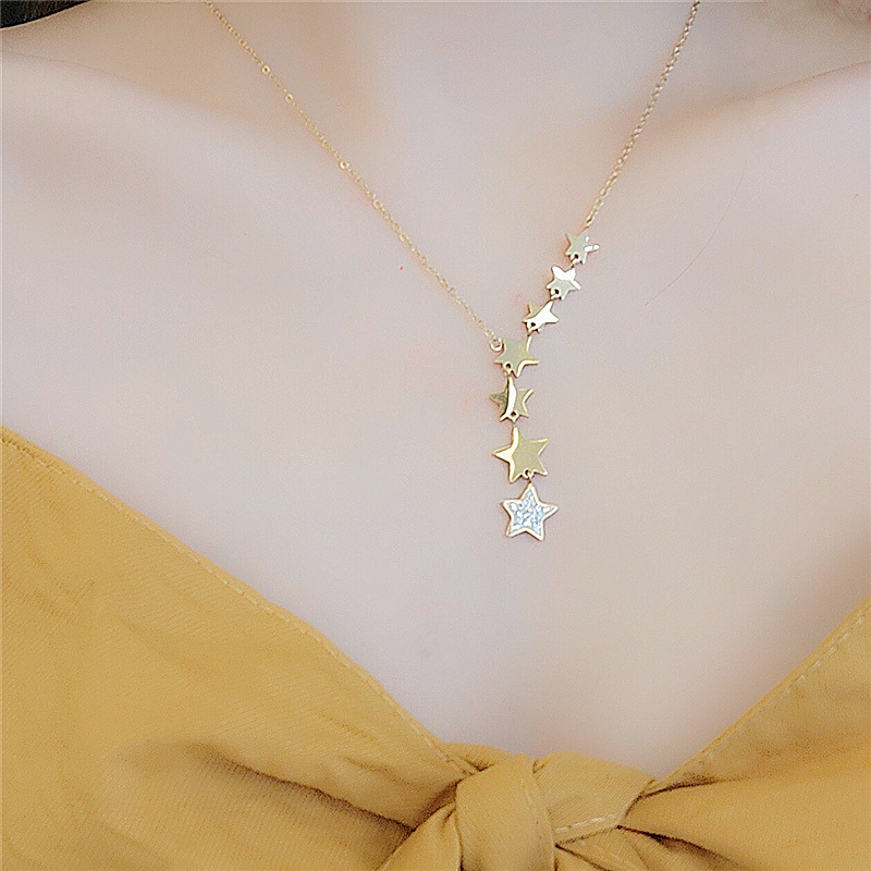 fleepmart Stainless Steel Stars Choker Necklace For Women New Design Temperament Jewelry Long Necklaces Gifts