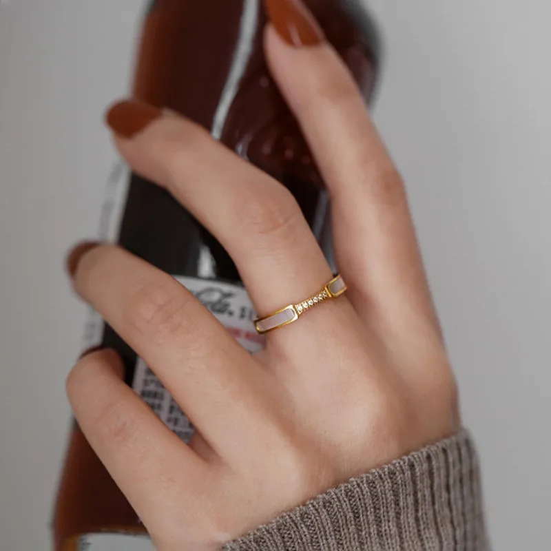 Fleepmart Stainless Steel Zircon Shell Ring for Women Simple Index Finger Gold Color Ring Party Wedding Gift