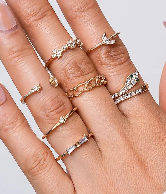 Fleepmart Stainless Steel Zircon Shell Ring for Women Simple Index Finger Gold Color Ring Party Wedding Gift