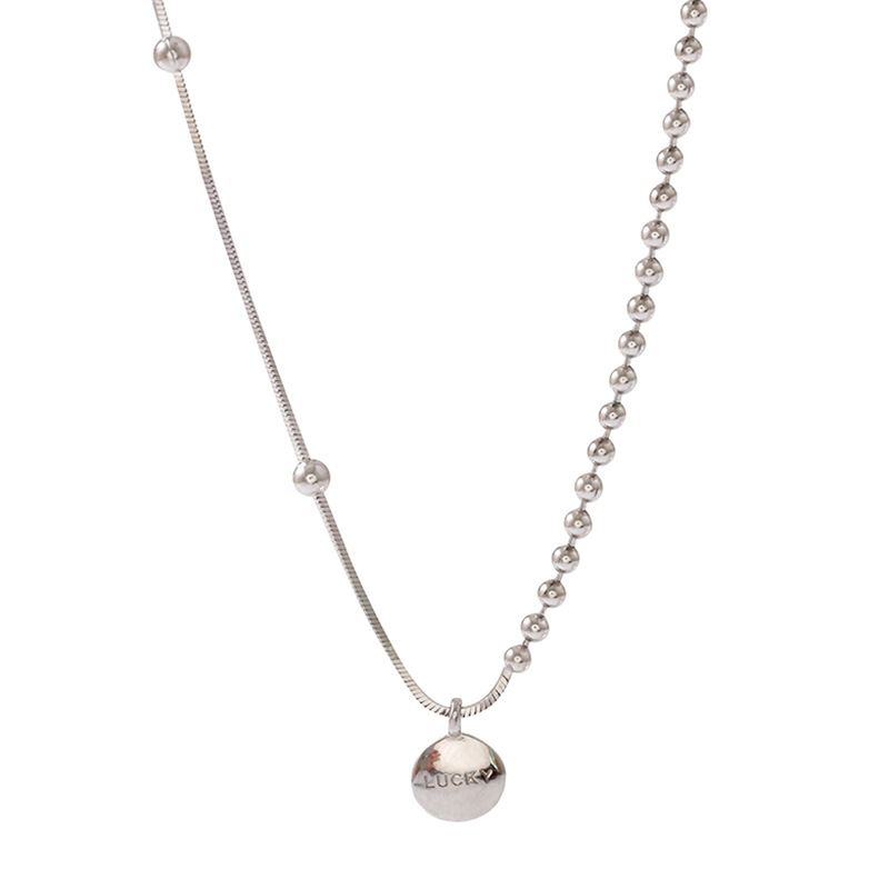 Fleepmart Stamp Lucky Beanie Letter Necklace for Women Asymmetry Short Clavicle Chain Silver Color Temperament Jewelry