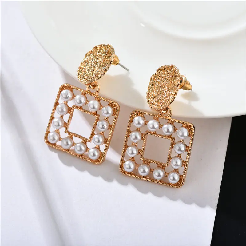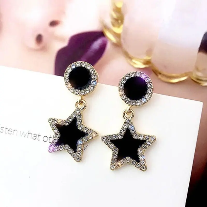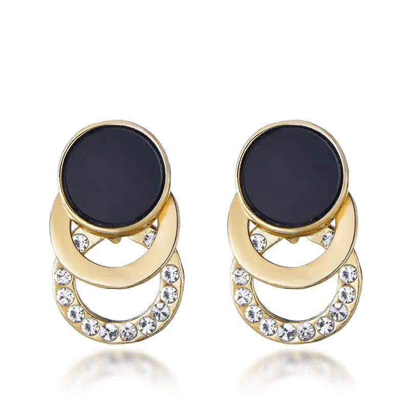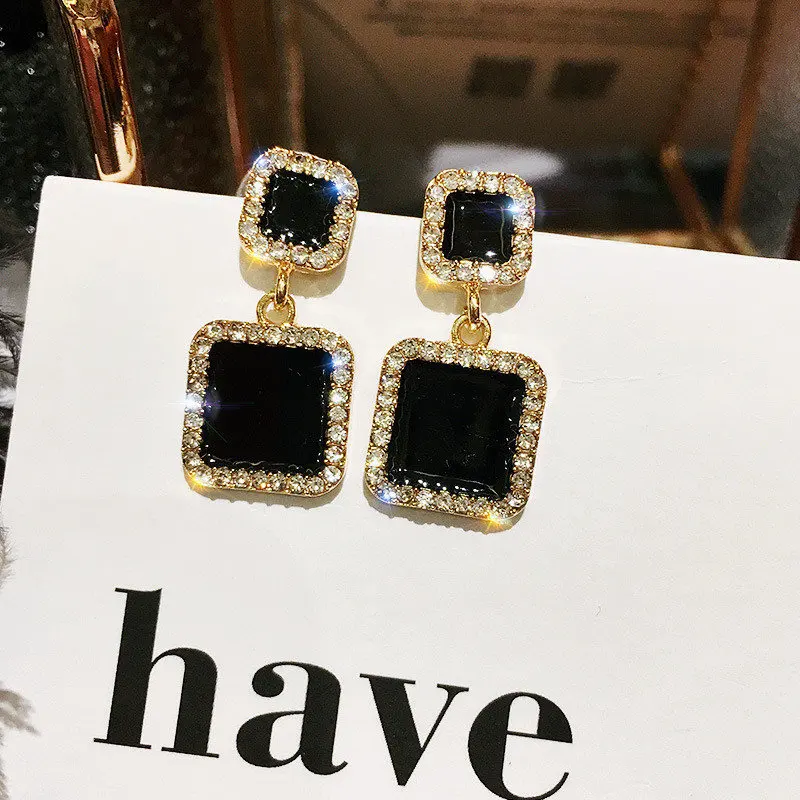 Fleepmart Statement Earrings 2022 Black Square Geometric Earrings for Women Luxury Crystal Wedding Rhinestones Earring Gold Color