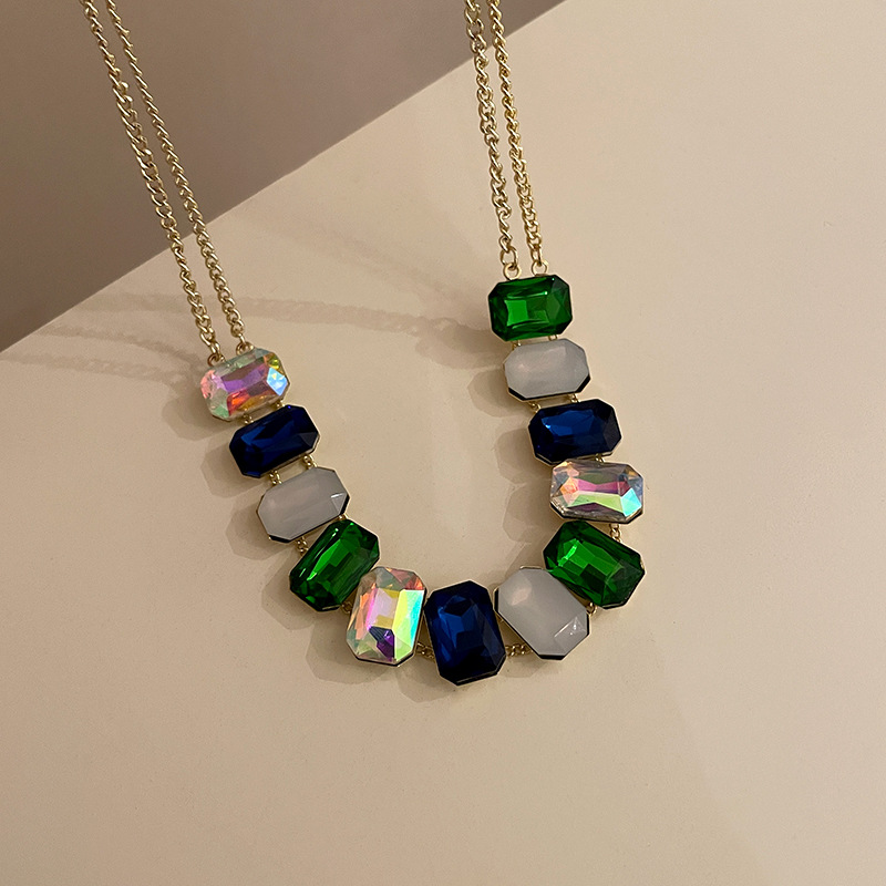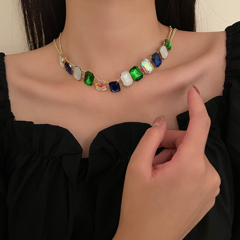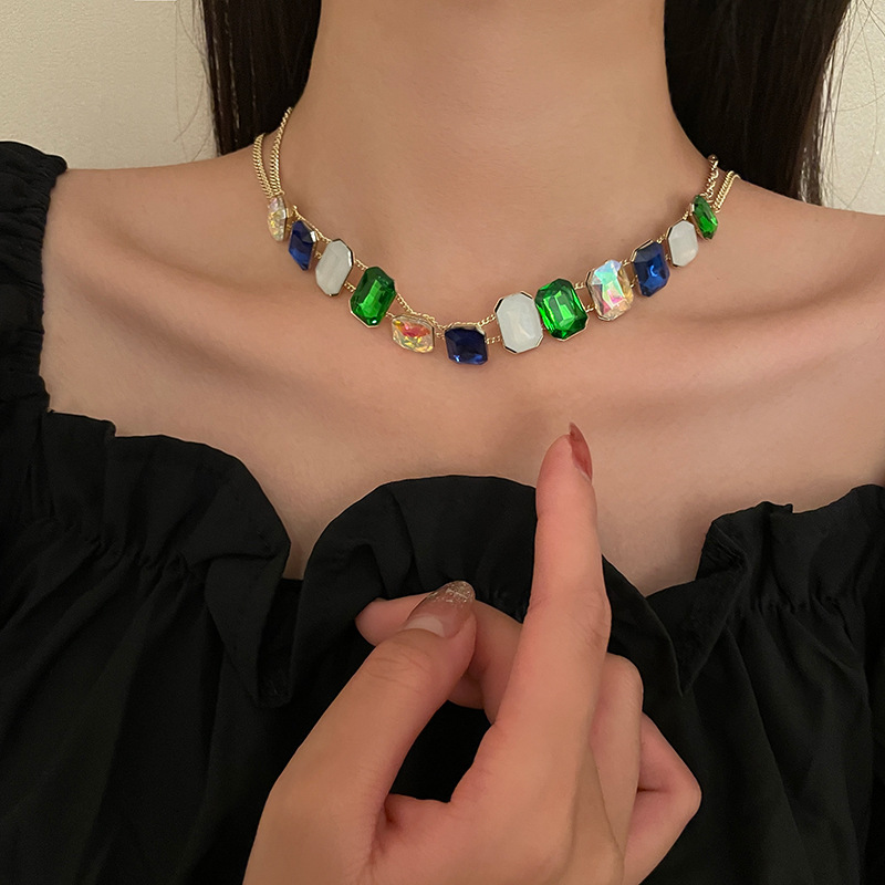 fleepmart Statement Green Mixed Color Crystal Choker Necklace For Women Personality Classic New Jewelry