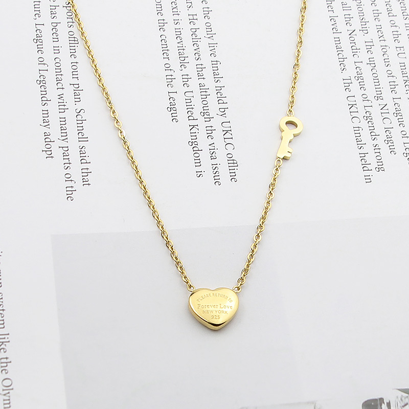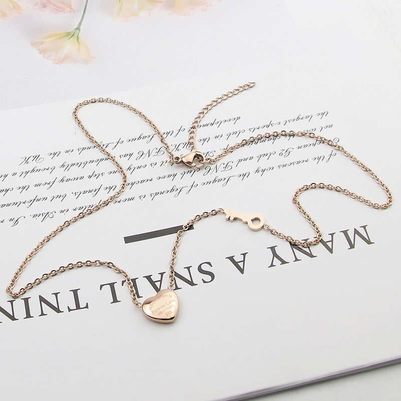 Fleepmart steel forever love peach heart key necklace heart lock key necklace fashion jewelry clavicle necklace