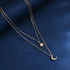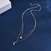Fleepmart Sterling Silver Double Layer Simple Stars Choker Shiny Zircon Moon Pendants Necklaces Girl Gift Fine Accessories