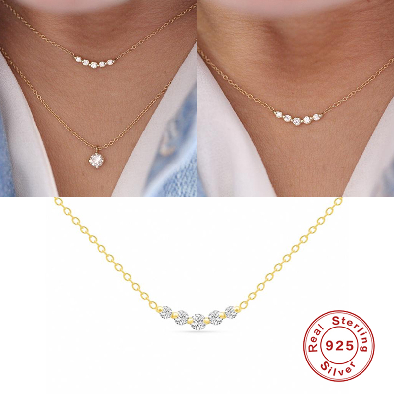 Fleepmart Sterling Silver Five Round Zircon Chain Necklace For Women Girl All-match Simple Shiny Crystal Clavicle Choker Necklace