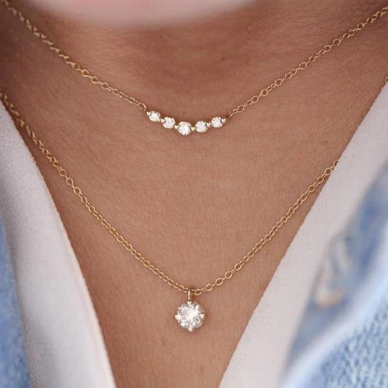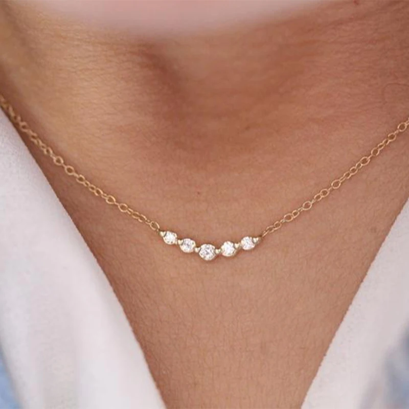 Fleepmart Sterling Silver Five Round Zircon Chain Necklace For Women Girl All-match Simple Shiny Crystal Clavicle Choker Necklace