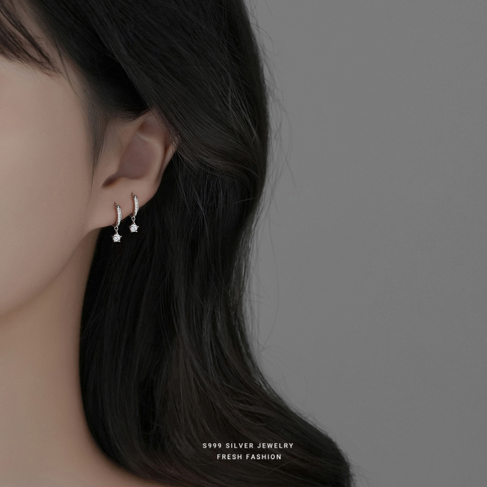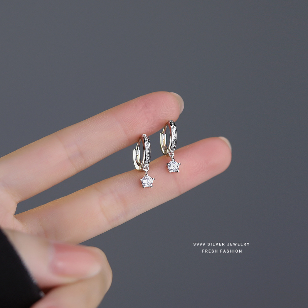 Fleepmart Sterling Silver Light Shiny Zircon Water Drop Earrings for Women Girl Exquisite Temperament Silver Jewelry