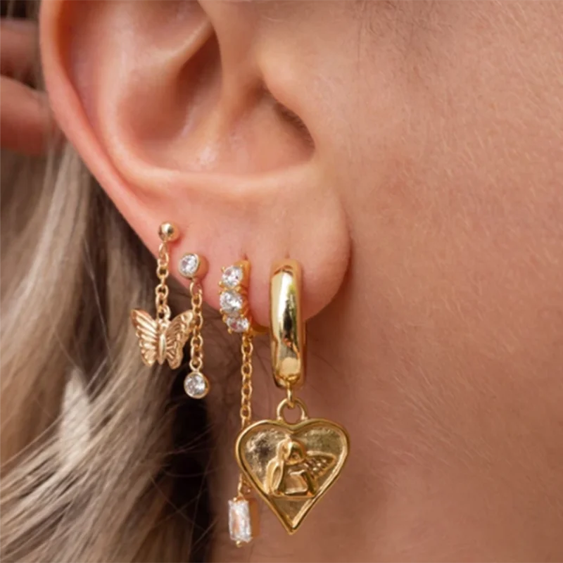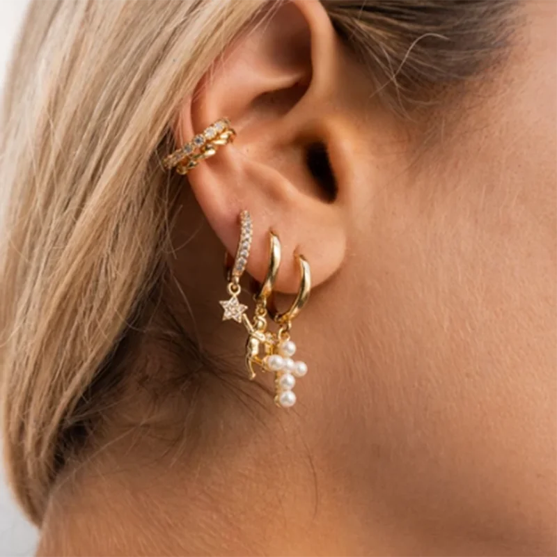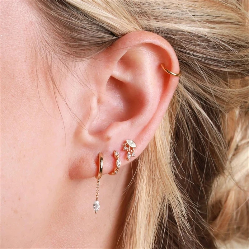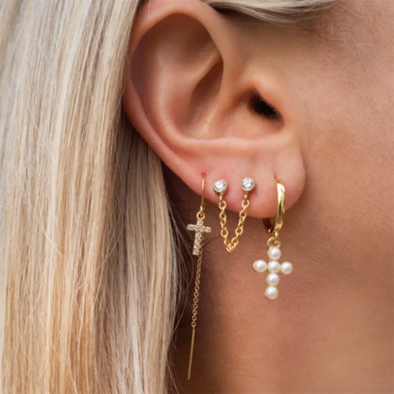 Fleepmart Sterling Silver Rectangle Oval Zircon Charm Chain Tassel Dangle Earrings Elegant Pearl Pave Cross Pendant Earring Gift