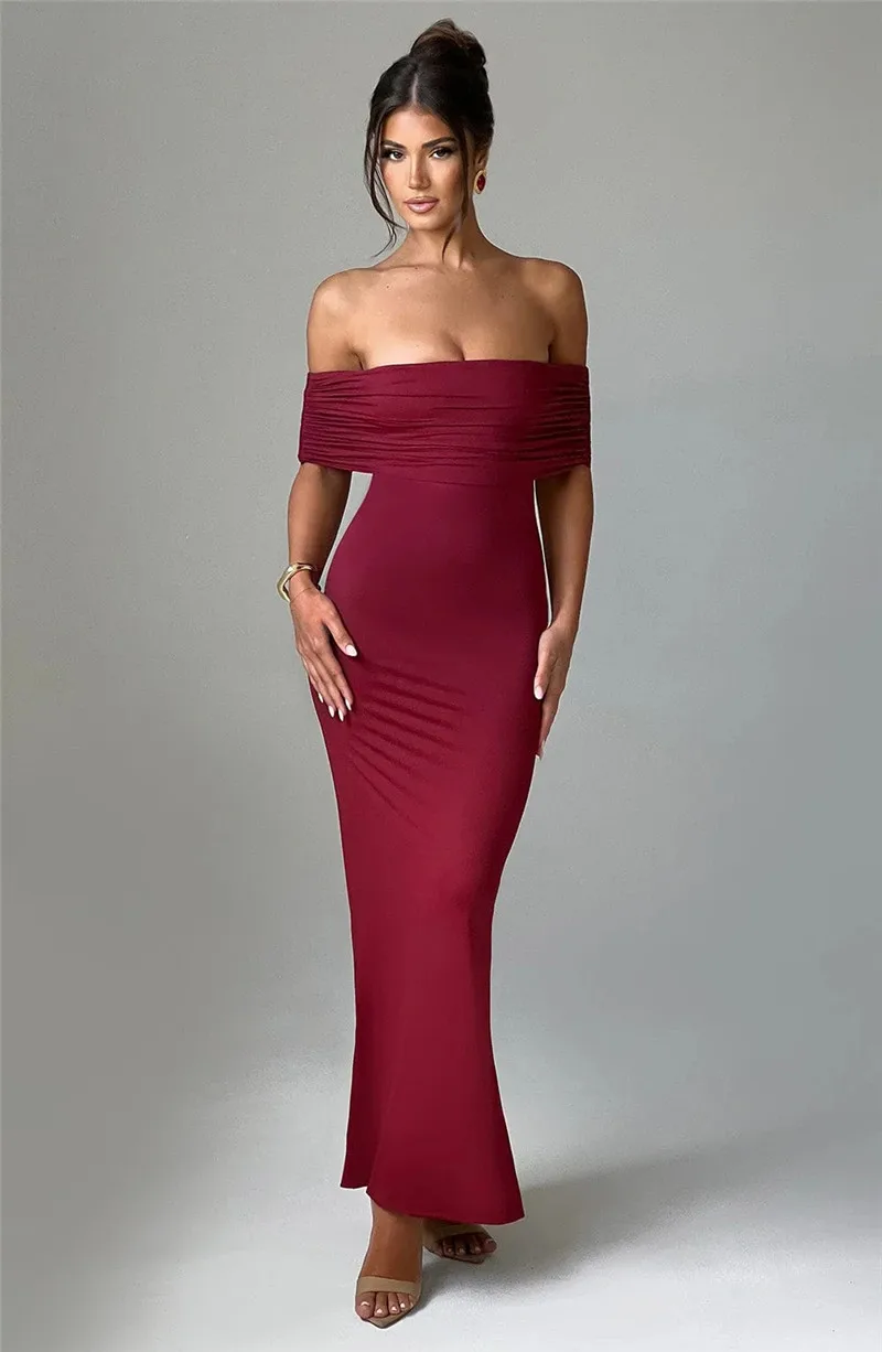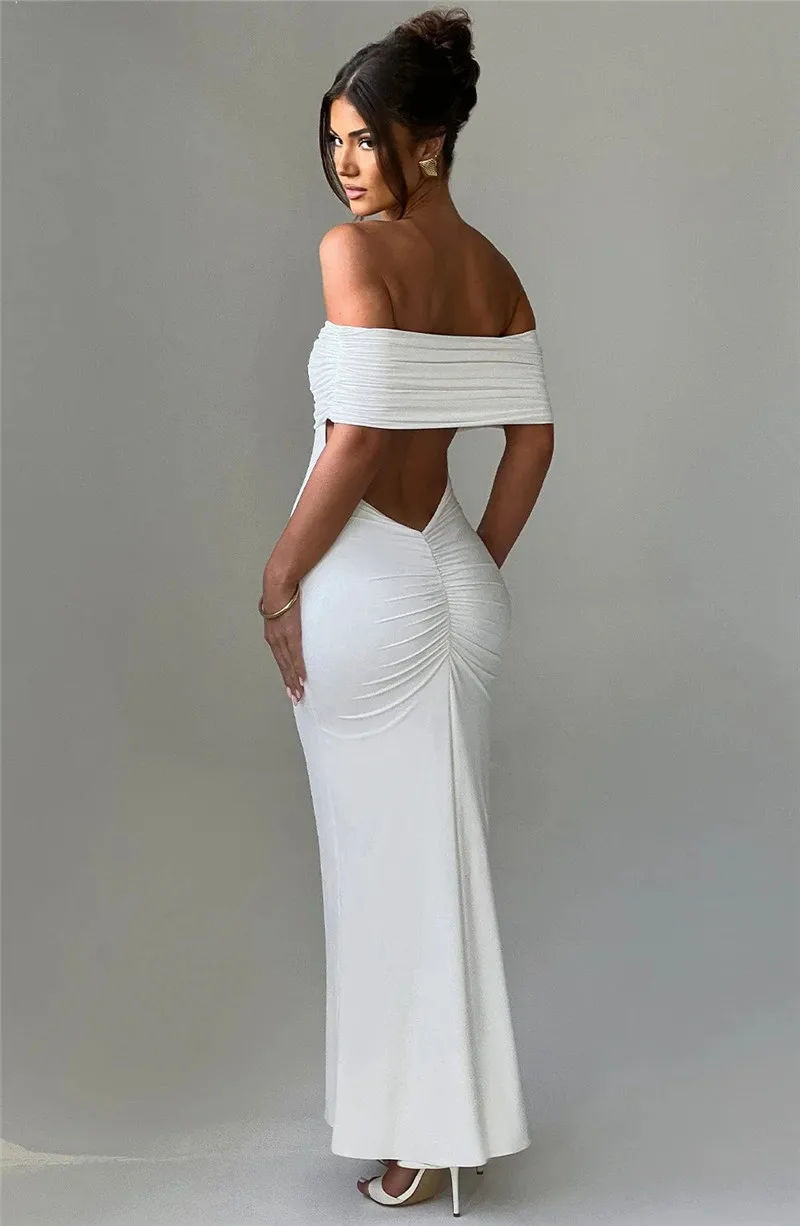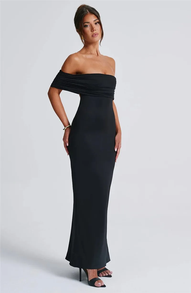 Fleepmart Strapless Backless Sexy Maxi Dress For Women Black Solid Off-shoulder Sleeveless Bodycon Club Party Long Dress Elegant