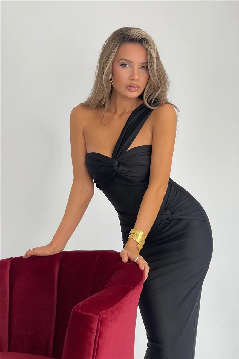 Fleepmart Strapless Backless Sexy Maxi Women One Shoulder Sleeveless Bodycon Club Party Long Dress Elegant