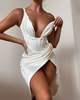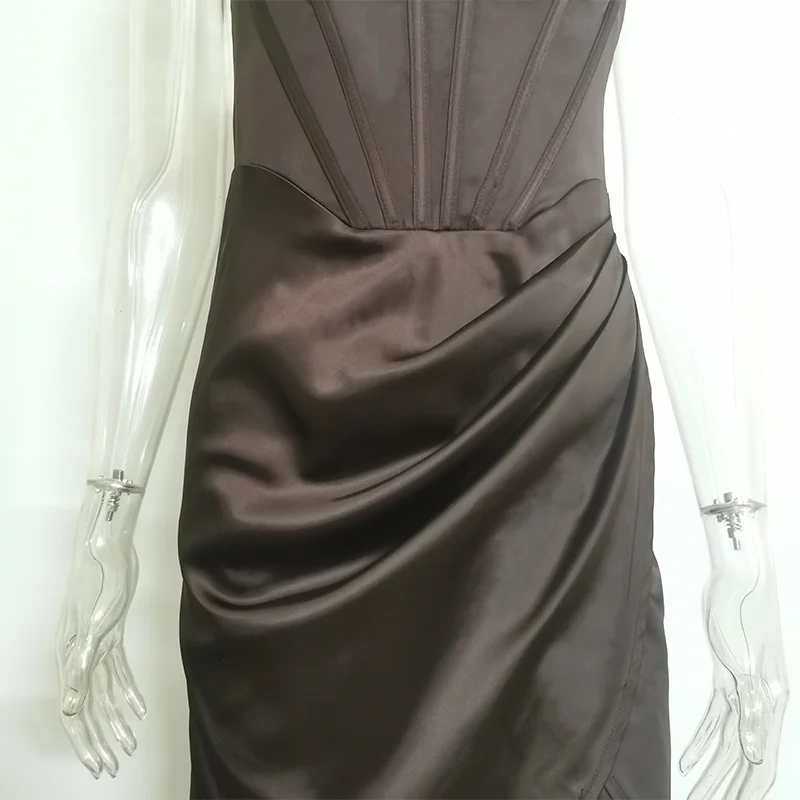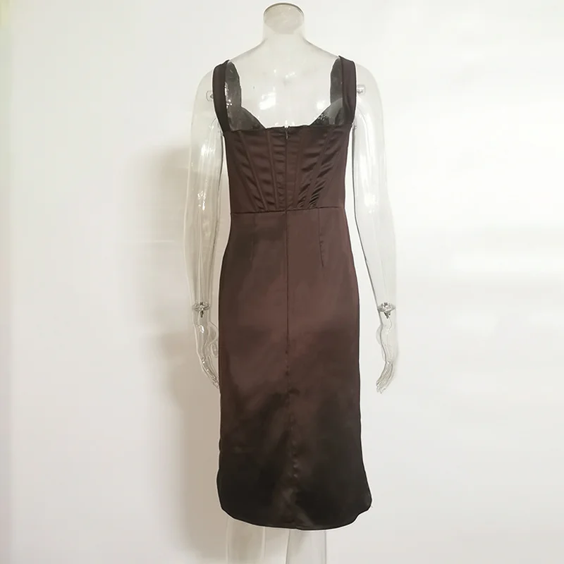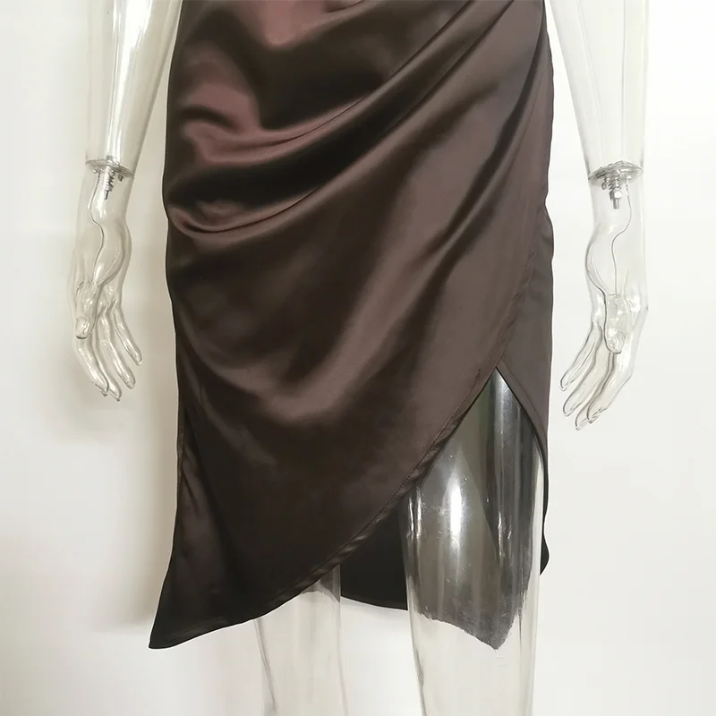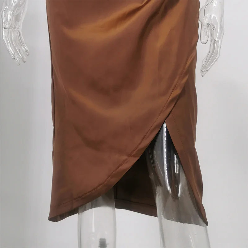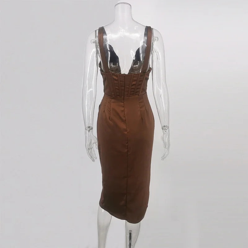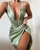 Fleepmart Stretch Satin Elegant Dress Women High Split Deep V Neck Sexy Party Dress 2021 Summer Dresses With Fishbone Vestidos