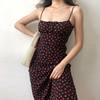 Fleepmart Summer Boho Red Strawberry Floral Print Spaghetti Strap Dress Women Black Elegant Sleeveless Sexy Beach Party Long Dresses 2022