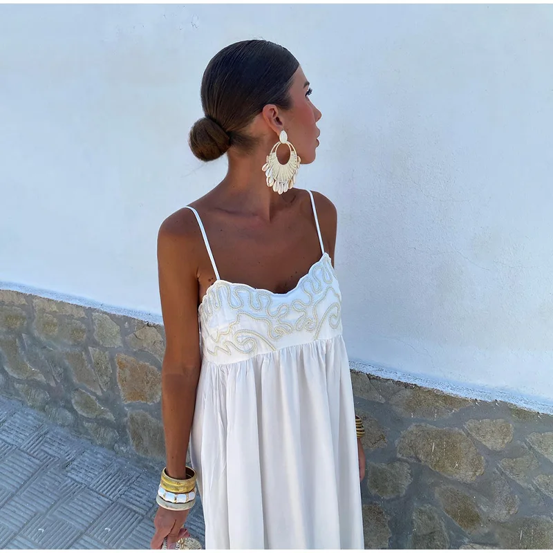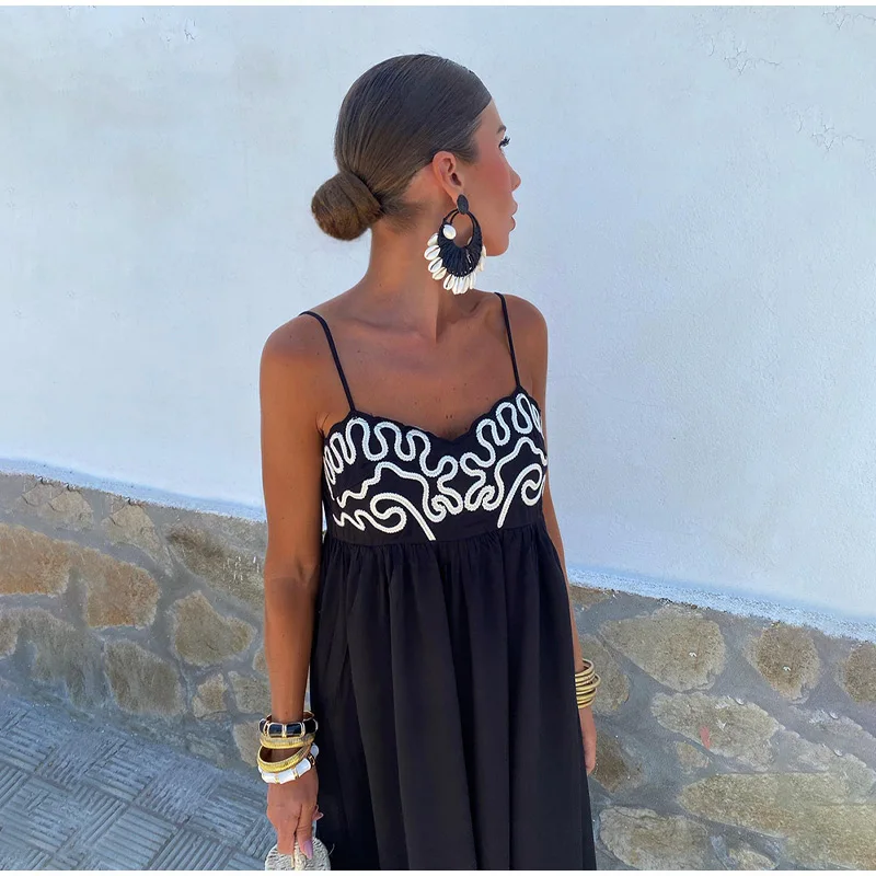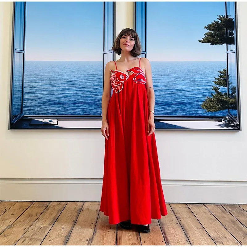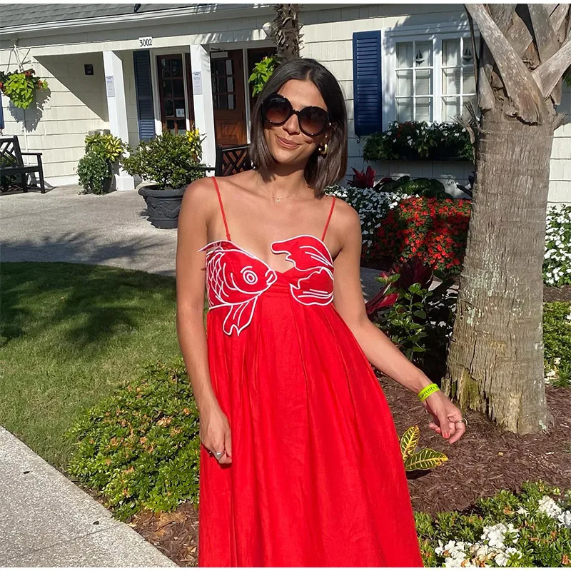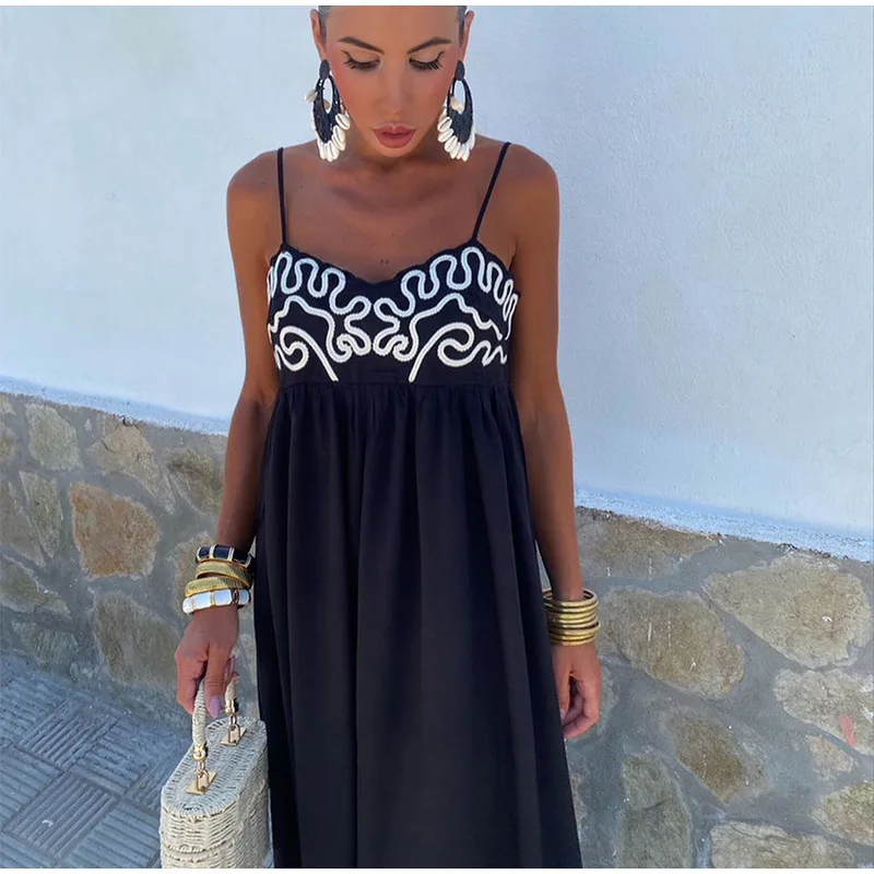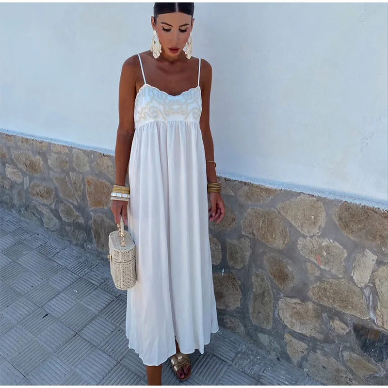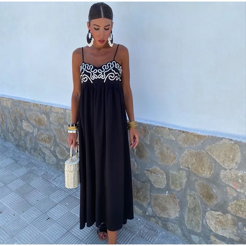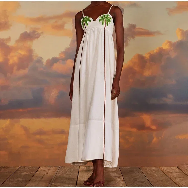 Fleepmart Summer Coconut Tree Printed Loose Sling Maxi Dress Women Sexy Strapless Sleeveless Loose Robes Lady Holiday Beach Party Vestidos