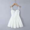 Fleepmart Summer dress 2025 Women Sexy White Lace Dressses Embroideryed Bodycon Mini Dress Korean Fashion Ruffle Dresss Lace Up Fish Bone