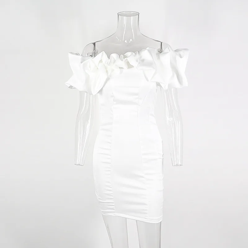 Fleepmart Summer Dress Women 2022 New Arrivals Ruffle Off The Shoulder Bodycon Dress House of Cb Black Evening Party Dress