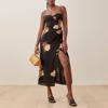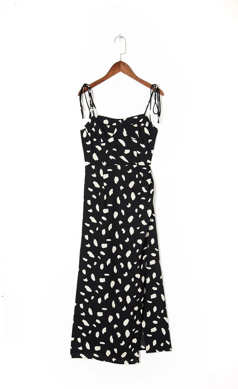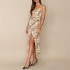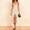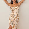 Fleepmart Summer Dresses For Women 2021 Elegant Vintage Print Slit Midi Party Dress Sweetheart Neck Spaghetti Strap Tie Sexy Bodycon Dress