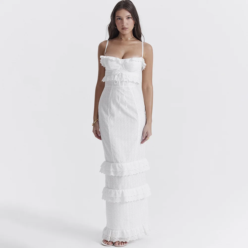 Fleepmart Summer Elegant White Women Ready To Wear Dresses Maxi Luxury Lace Bodycon Wedding Event Party Dress Formal Occsaion