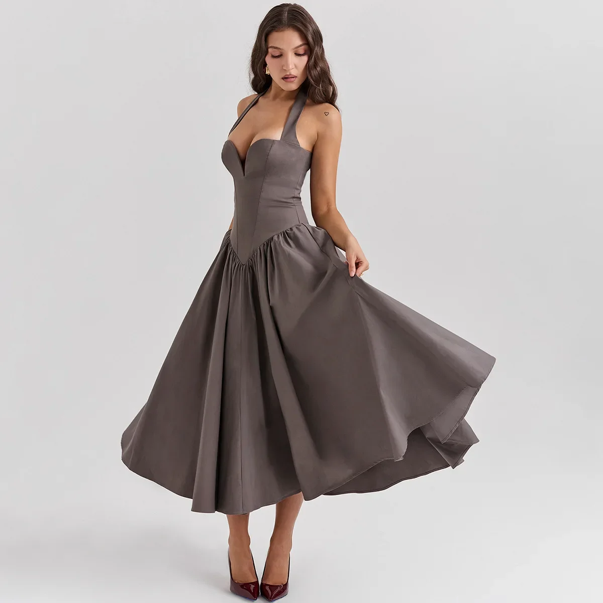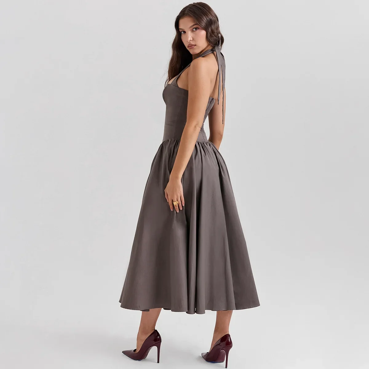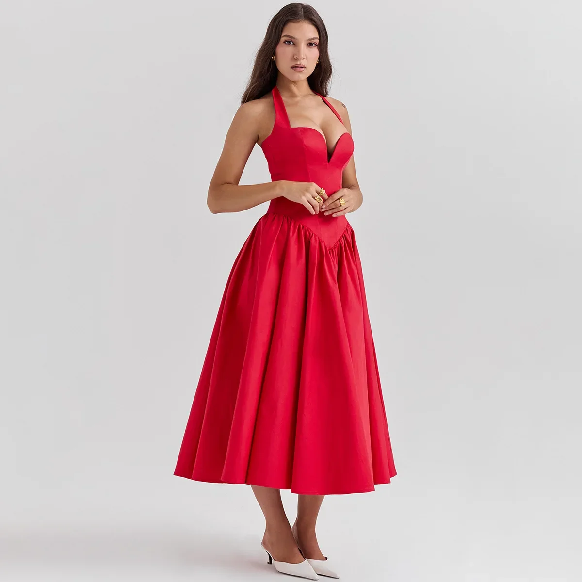 Fleepmart Summer Fit and Flare Halter Elegant Bodycon Party Sexy Long Casual Dress Women’s Clothing