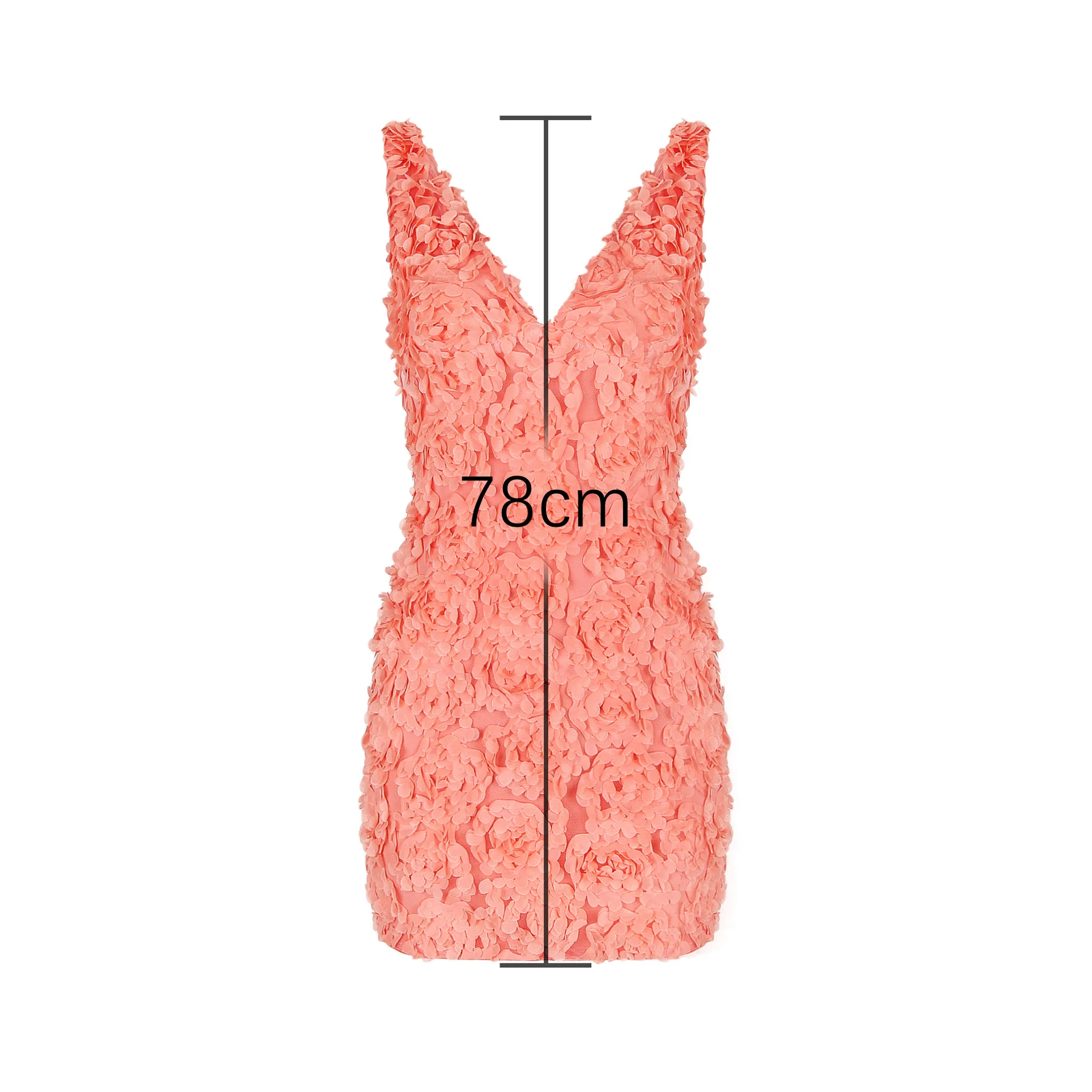 Fleepmart Summer Floral Applique Mini Sexy New Arrivals Orange V Neck Bodycon Party Satin Birthday Dress