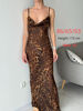 Fleepmart Summer Leopard Sexy See Through Maxi Backless Sheer Beach Lace Up Elegant Floor Length Holiday Dress