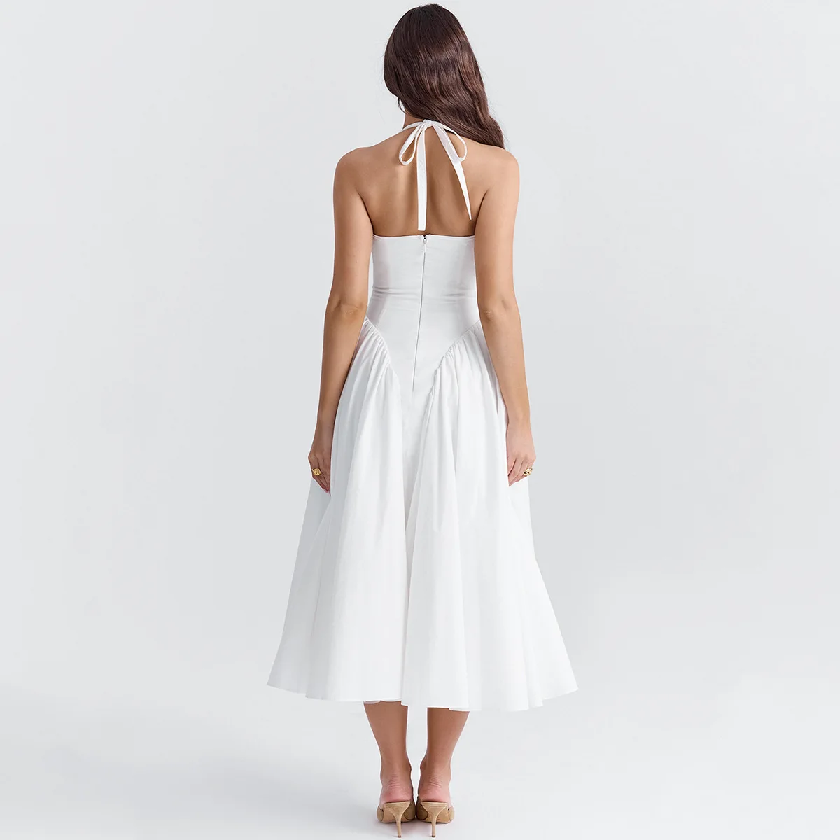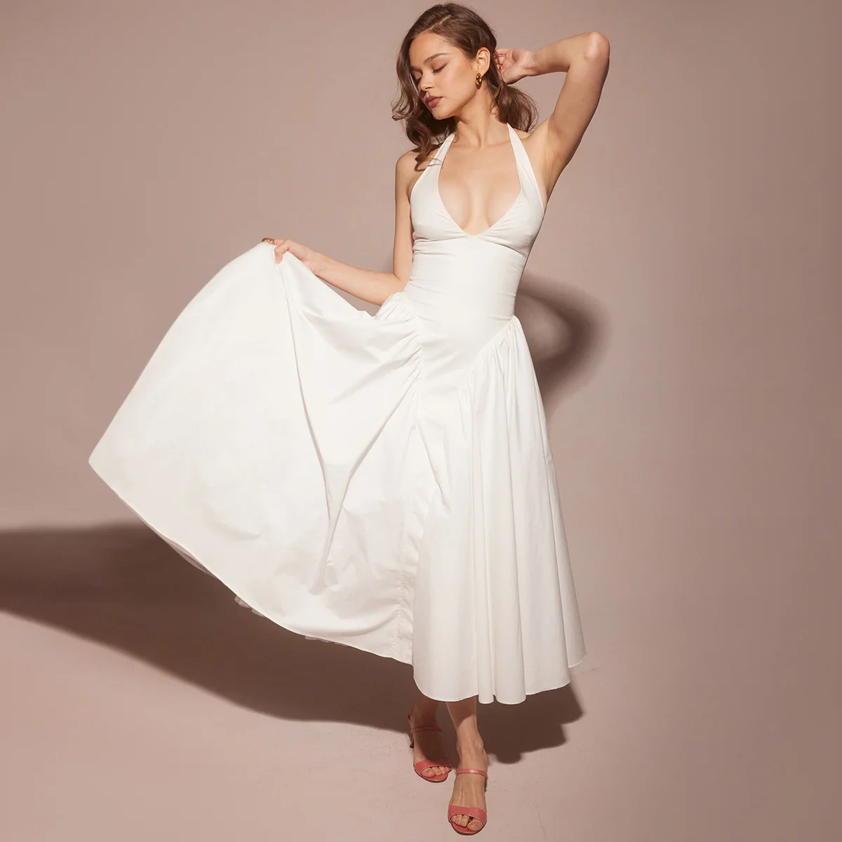 Fleepmart Summer Maxi Women New Halter White Party Sexy Casual Backless Long Dress Flare Bottom