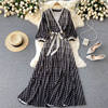 Fleepmart Summer New Gradient Color Wave Point Long Maxi Vestidos Women's Casual Lace-up Print Cardigans Dresses