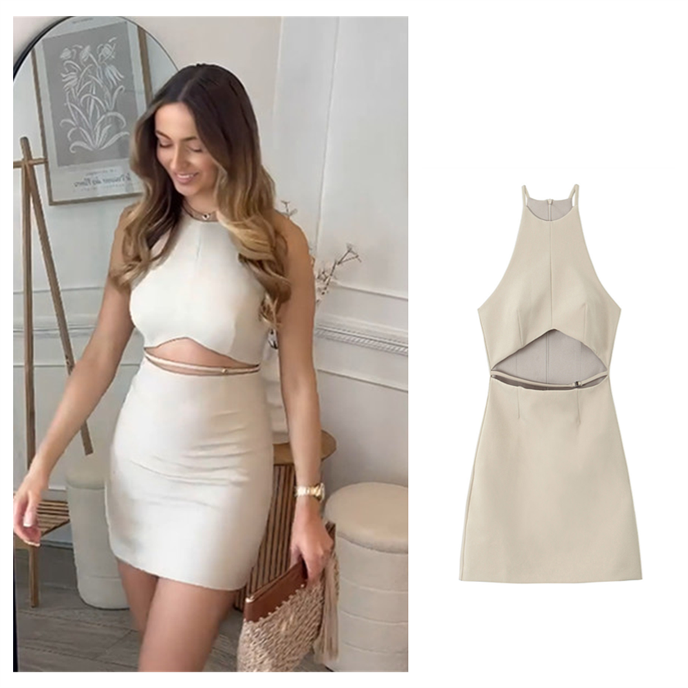 Fleepmart Summer New Women’s Fashion and Elegance Slim Fit Waist Versatile Open Design Hollow Short Dress