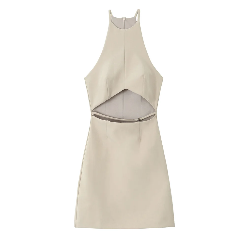 Fleepmart Summer New Women’s Fashion and Elegance Slim Fit Waist Versatile Open Design Hollow Short Dress