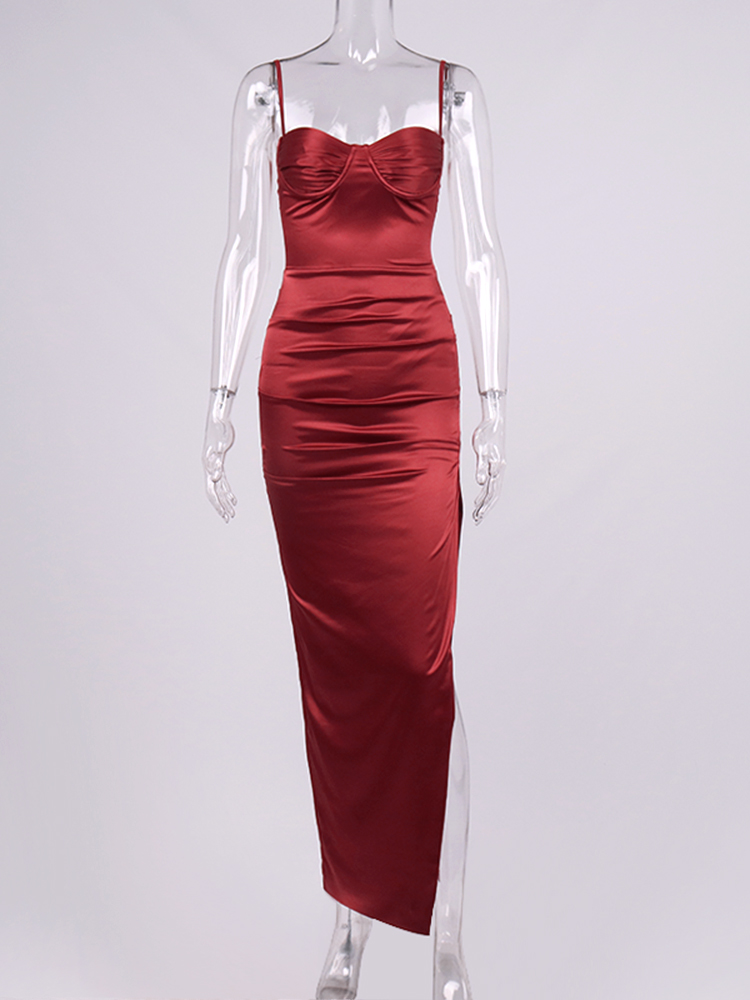 Fleepmart Summer Satin Dress Bodycon Side Split Spaghetti Strap Sexy Dress Maxi Dress Elegant Dresses For Women Party Robe Femme Evening