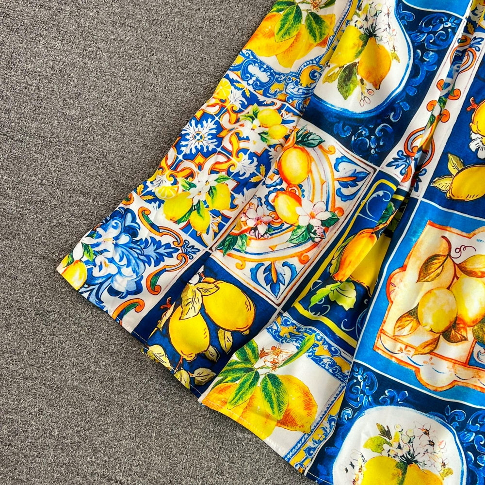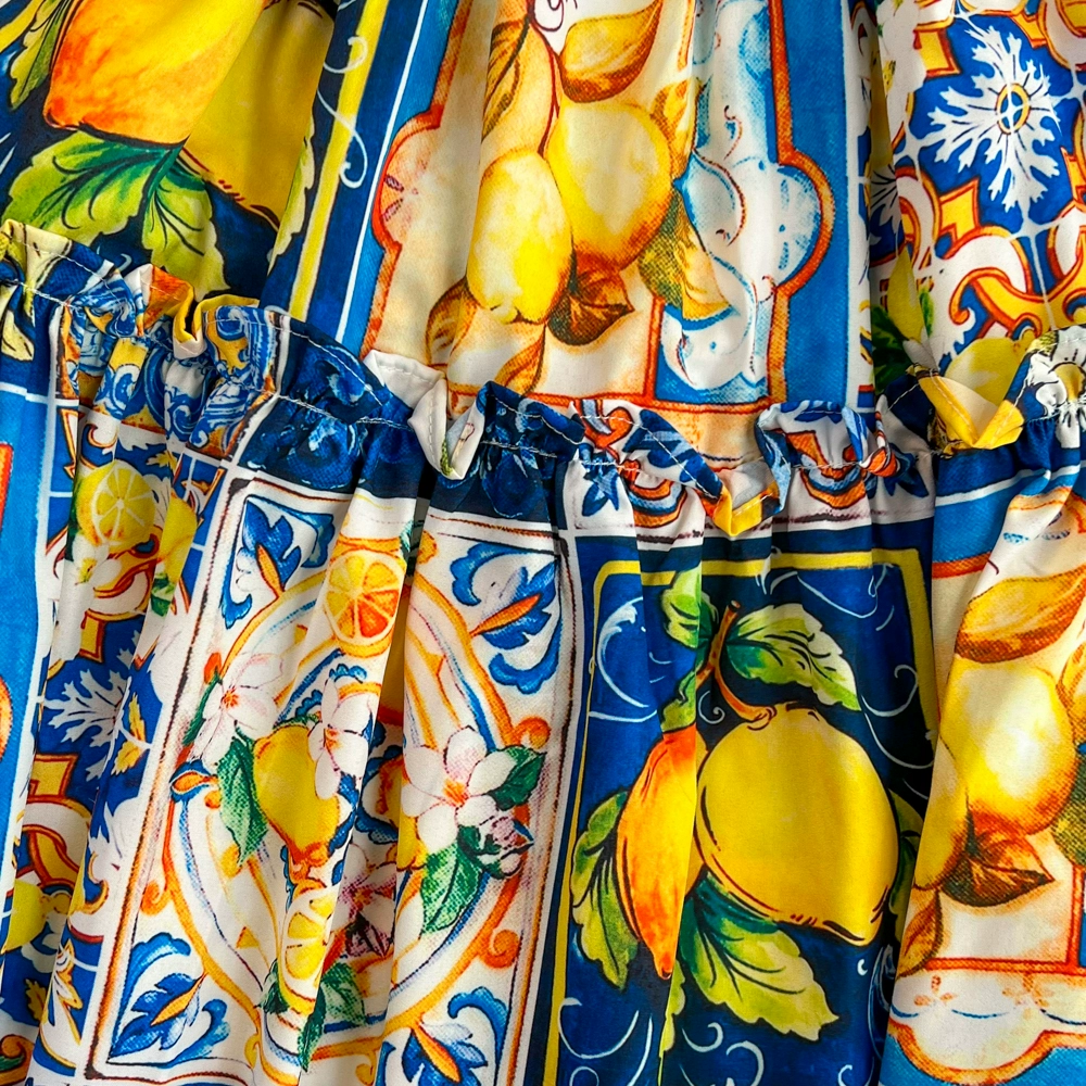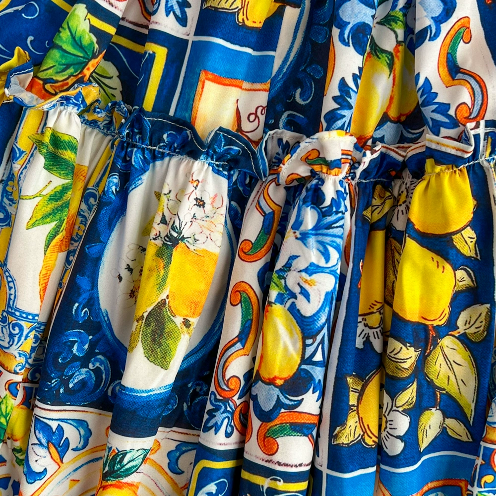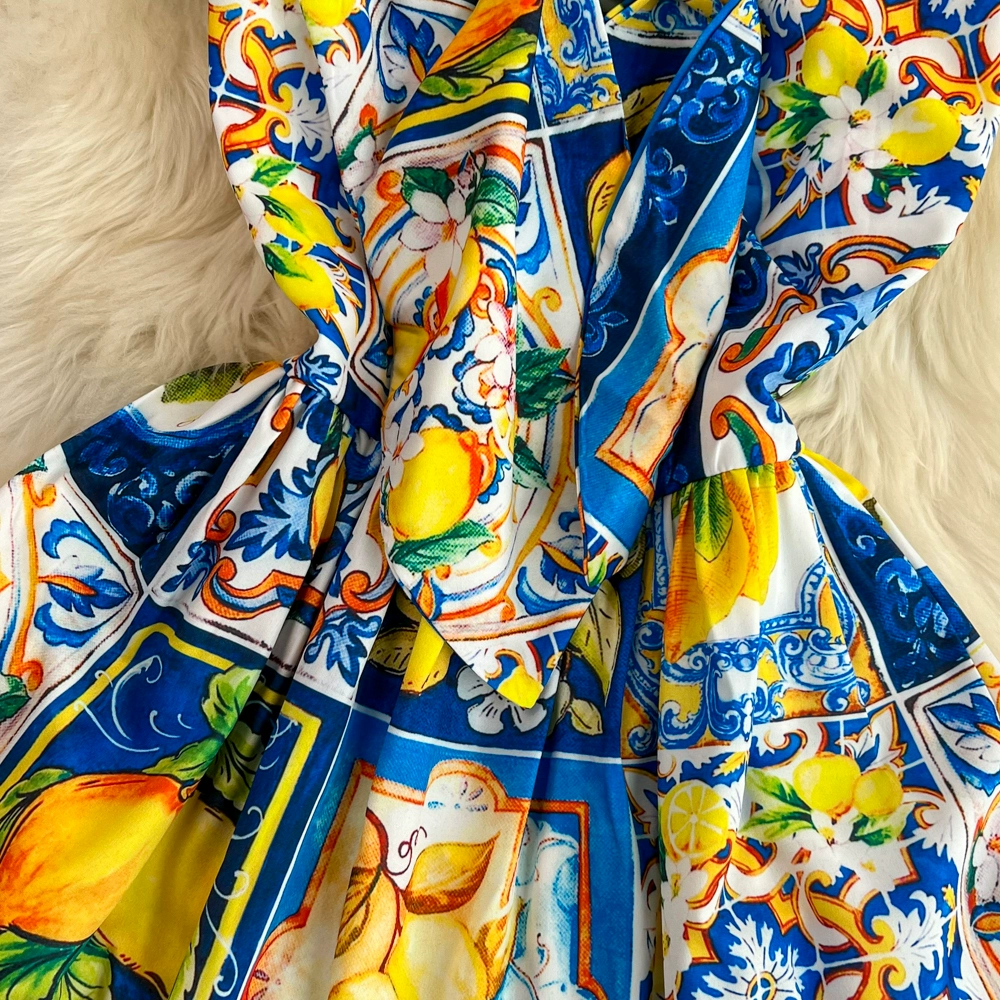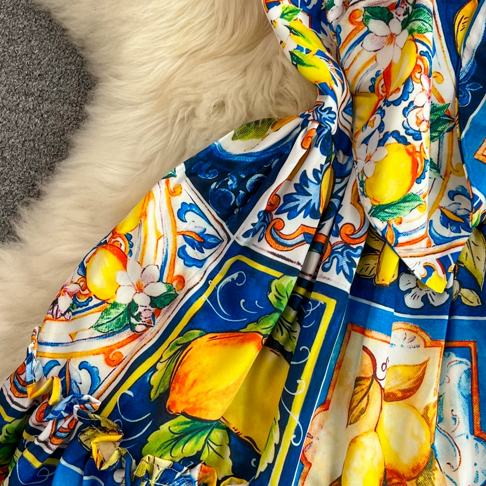 Fleepmart Summer Sexy Bow Spaghetti Strap Floral Lemon Print Dress Women Beach Backless Strapless High Elastic Waist Long Party Vestidos